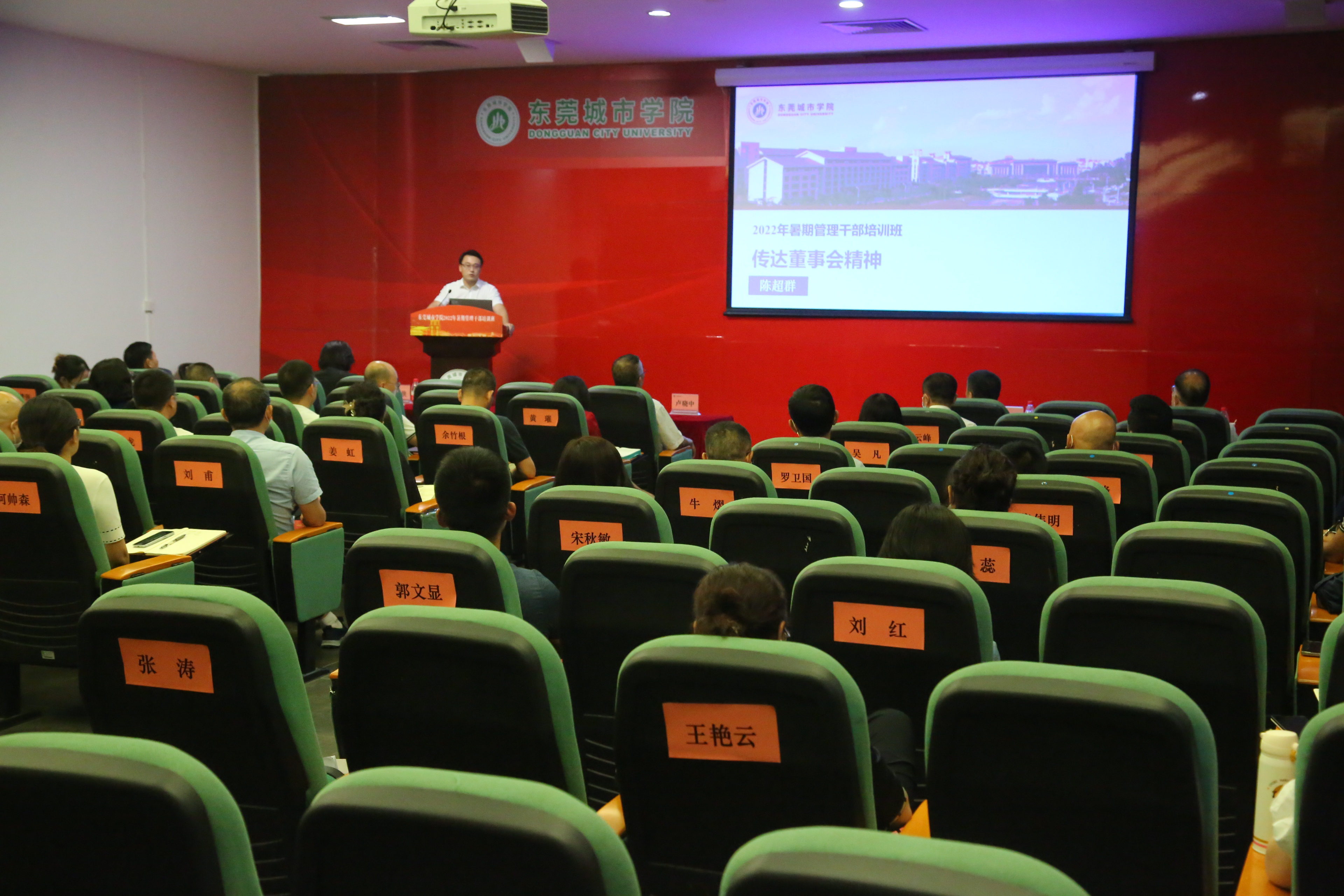 会上,董事会代表陈超群传达了学校董事会精神。董事长代表陈超群指出在过去一年里,学校取得了丰硕的成果,但同时将面临转设回头看、合格评估等重要工作。如何办成东莞最满意的大学,实现“创一流大学、办百年名校”的愿景,核心在于人才!培育管理干部事关学校的发展大局。