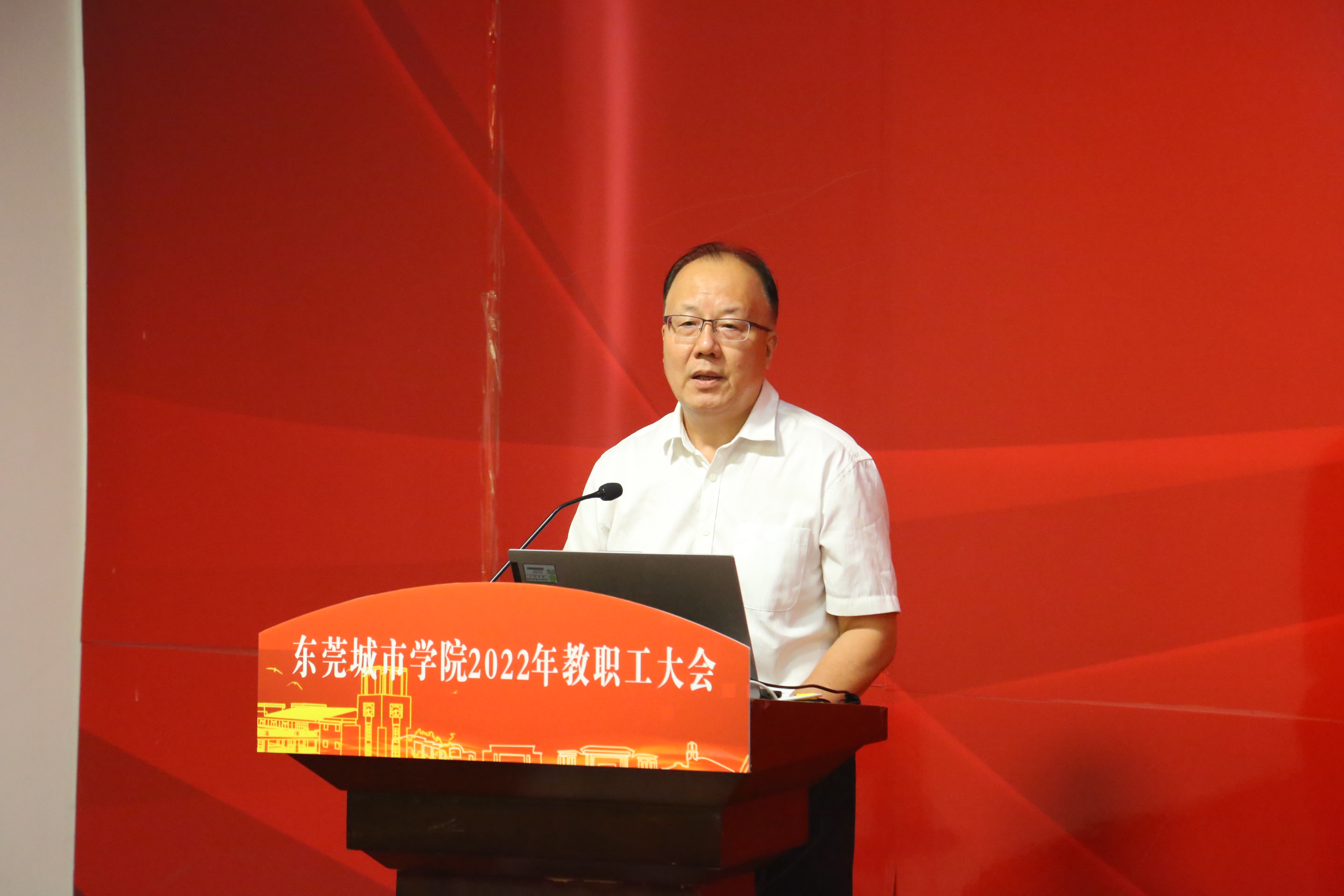 如何迎新挑战,抓住学校地处粤港澳大湾区的区位和学校发展中积淀的优势,李树英提出了2022-2023学年的工作思路,对于常规工作要常抓不懈、及早谋划、主动作为,不断创新,对于重点工作要目标具体、责任清晰,多方协调,务实有效。李树英指出:下一学年将重点做好校园扩容,迎新教育部的转设过渡期验收,做好党建示范校建设,特别是在图书馆建设党群服务中心、智慧教室,打造一站式学生综合事务中心,做好招生就业提升质与量的工作,加强学生管理和辅导员“三进”(进社区、进课堂、进宿舍)工作,做好产业学院、健康学院建设,深化专业、课程和教学改革工作,做好提升教学管理、学生管理、后勤服务标准及质量,提升师生满意度等20项重点工作。