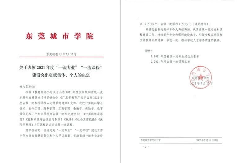 近日,米兰milan官方网站印发了《关于表彰2021年度“一流专业”“一流课程”建设突出贡献集体、个人的决定》(东莞城教[2022]32号)。《决定》对学校省一流专业建设点、一流课程的集体和个人进行表彰。这是继去年米兰milan对国家和省级一流专业建设点重奖之后的又一次重奖。