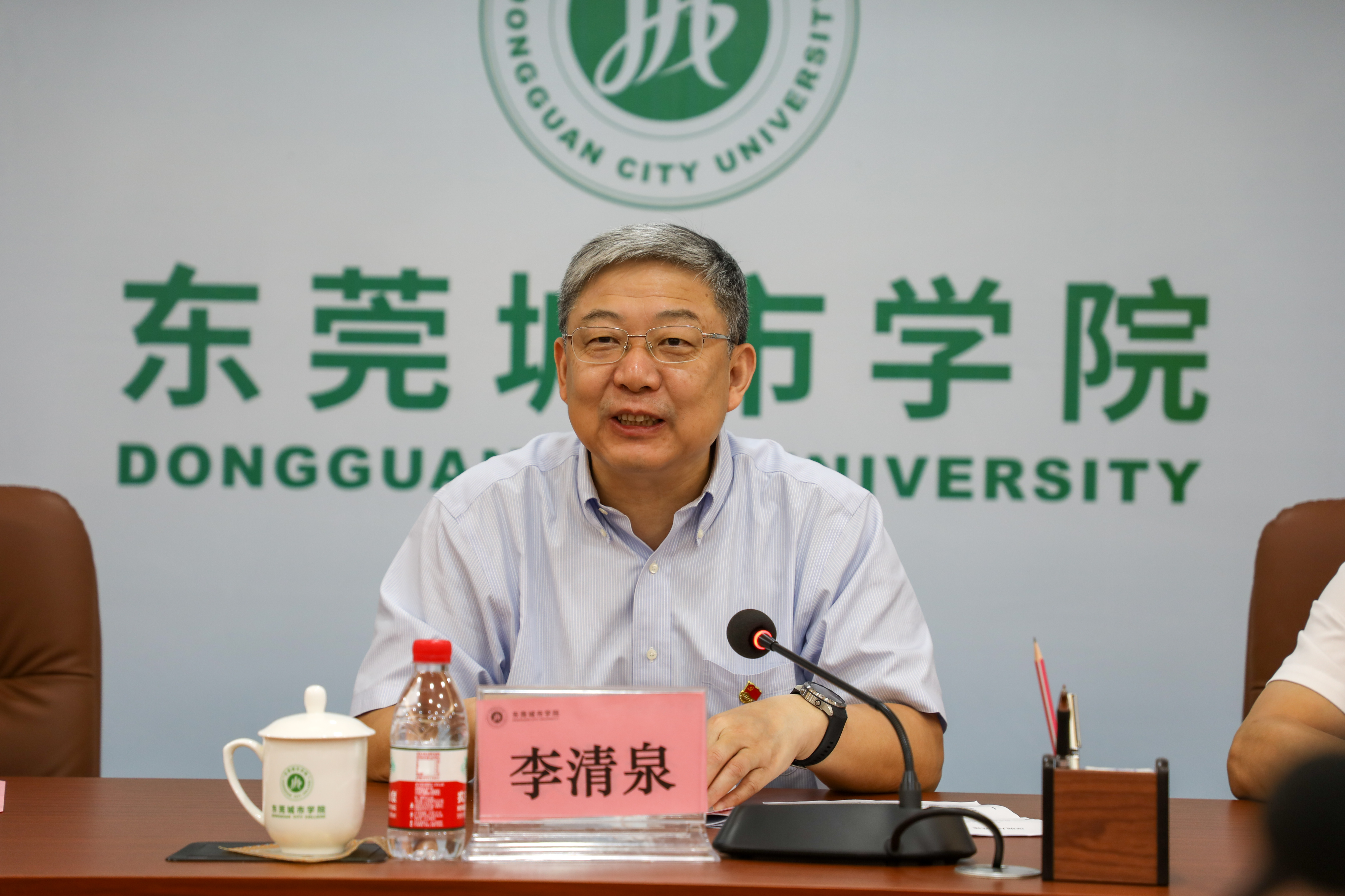 党委书记章德胜致欢迎辞,他对李清泉书记一行的到来表示热烈欢迎,对深圳大学党委的高度重视、精心谋划安排,选拔精兵强将来校帮扶党建工作表示衷心感谢。希望通过这次“组团式”党建帮扶,在深圳大学党委的帮助支持下,进一步加强党建引领,促进学校在党建引领、学科建设、教学科研、学生服务和思政工作等方面迈上新台阶。