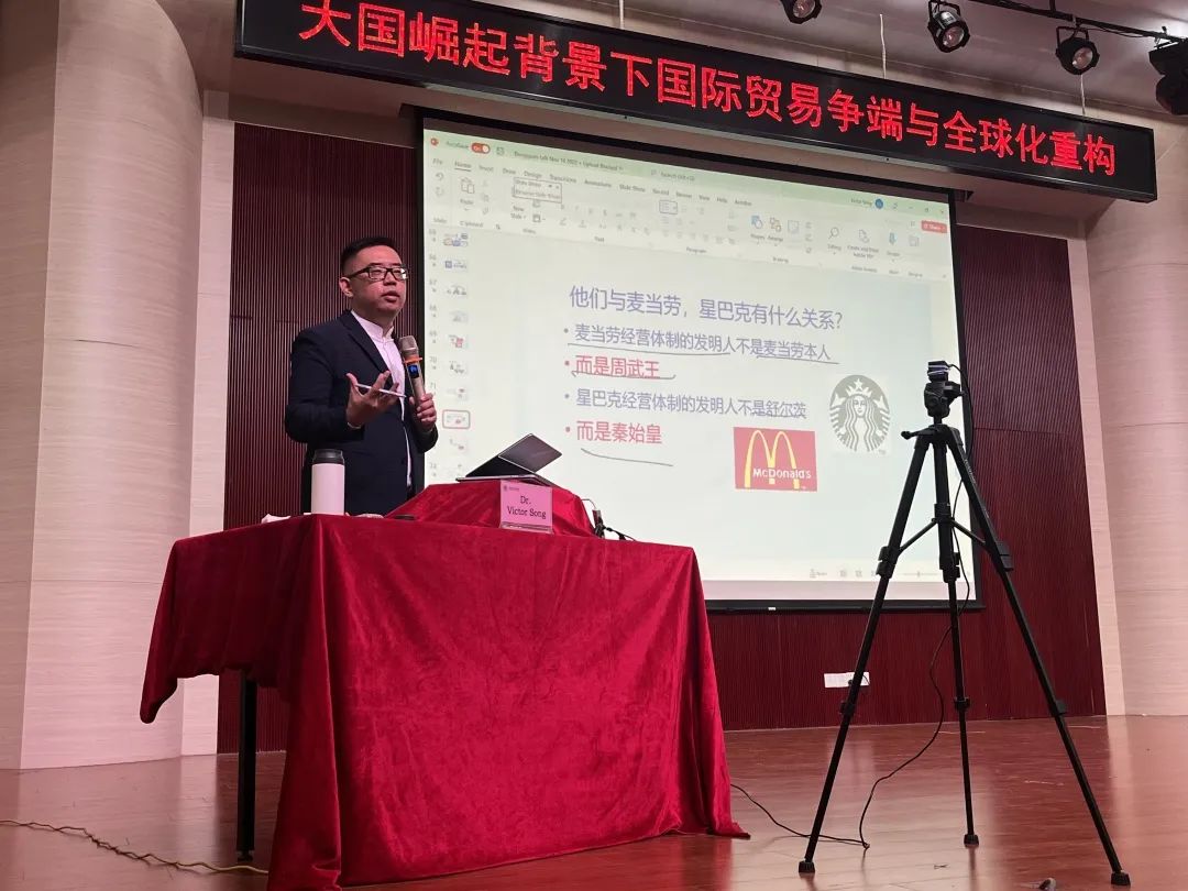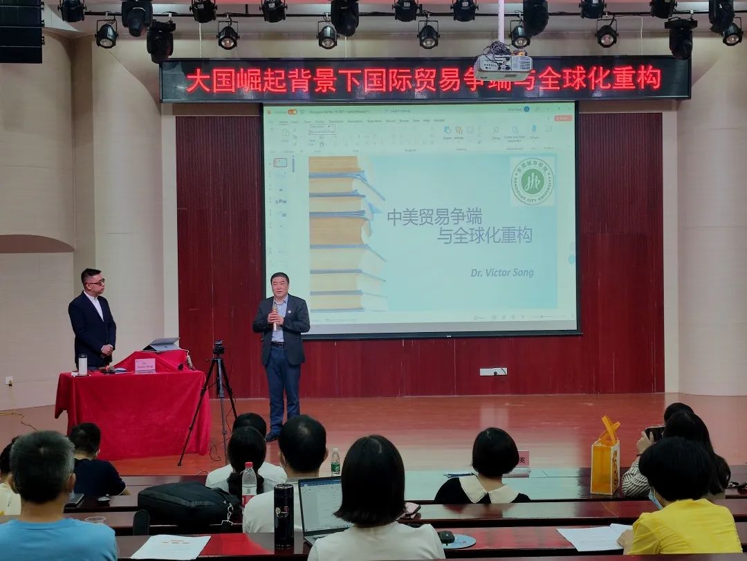 11月17日,米兰milan邀请加拿大卡尔加里大学经济学与金融学双博士、加拿大西蒙菲莎大学彼迪商学院金融与创新创业跨学科教授Dr.Victor Song,围绕“大国崛起背景下国际贸易争端与全球化重构”做主题演讲。米兰milan执行校长李树英、商学院与数字经济学院领导与老师参与会议。