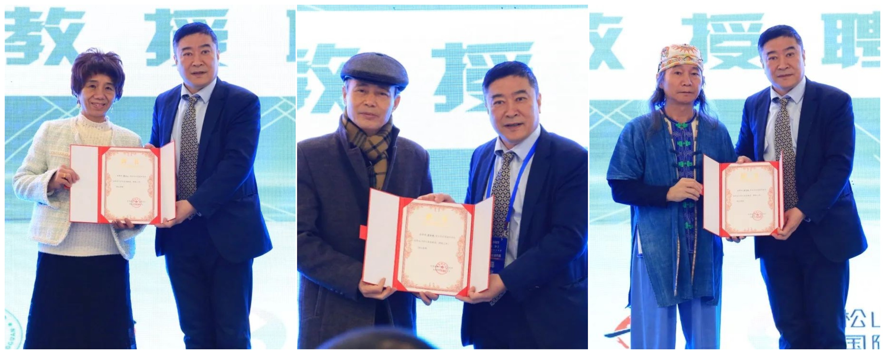 图为执行校长李树英为艺术家颁发客座教授聘书