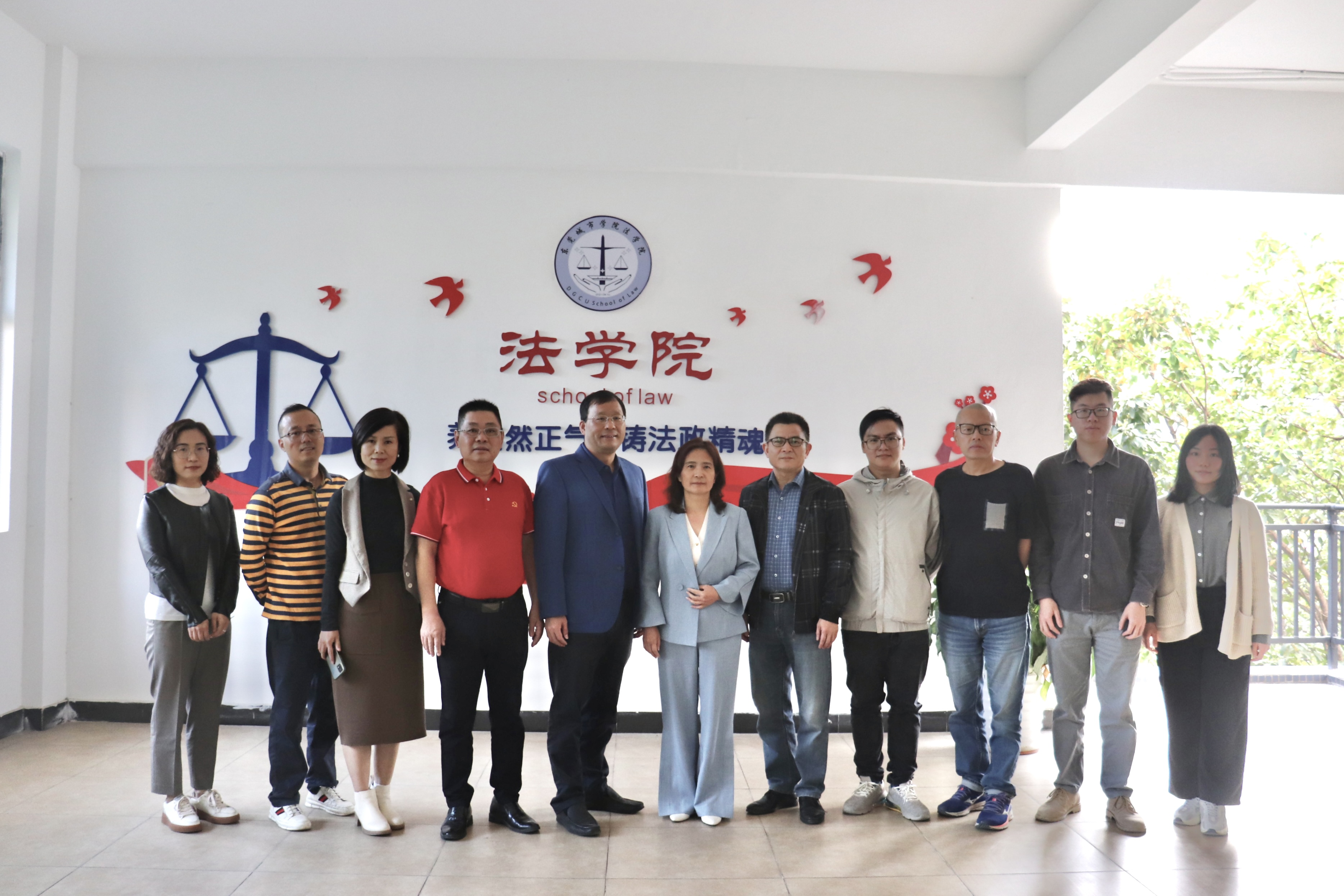 冯福均秘书长对我院立足粤港澳大湾区、践行立德树人的初心使命、培养德法兼修、明法笃行的应用型法治人才所取得的成绩予以高度肯定,并简要介绍了东莞市法学会的历史发展与成绩,指出高校法学教师参与法治实践的重要性,希望今后双方发挥各自优势,在法治护航东莞高质量发展、“以法兴企”法律沙龙、“百名法学家百场报告会”、加强习近平法治思想研究与宣传等方面加深合作。