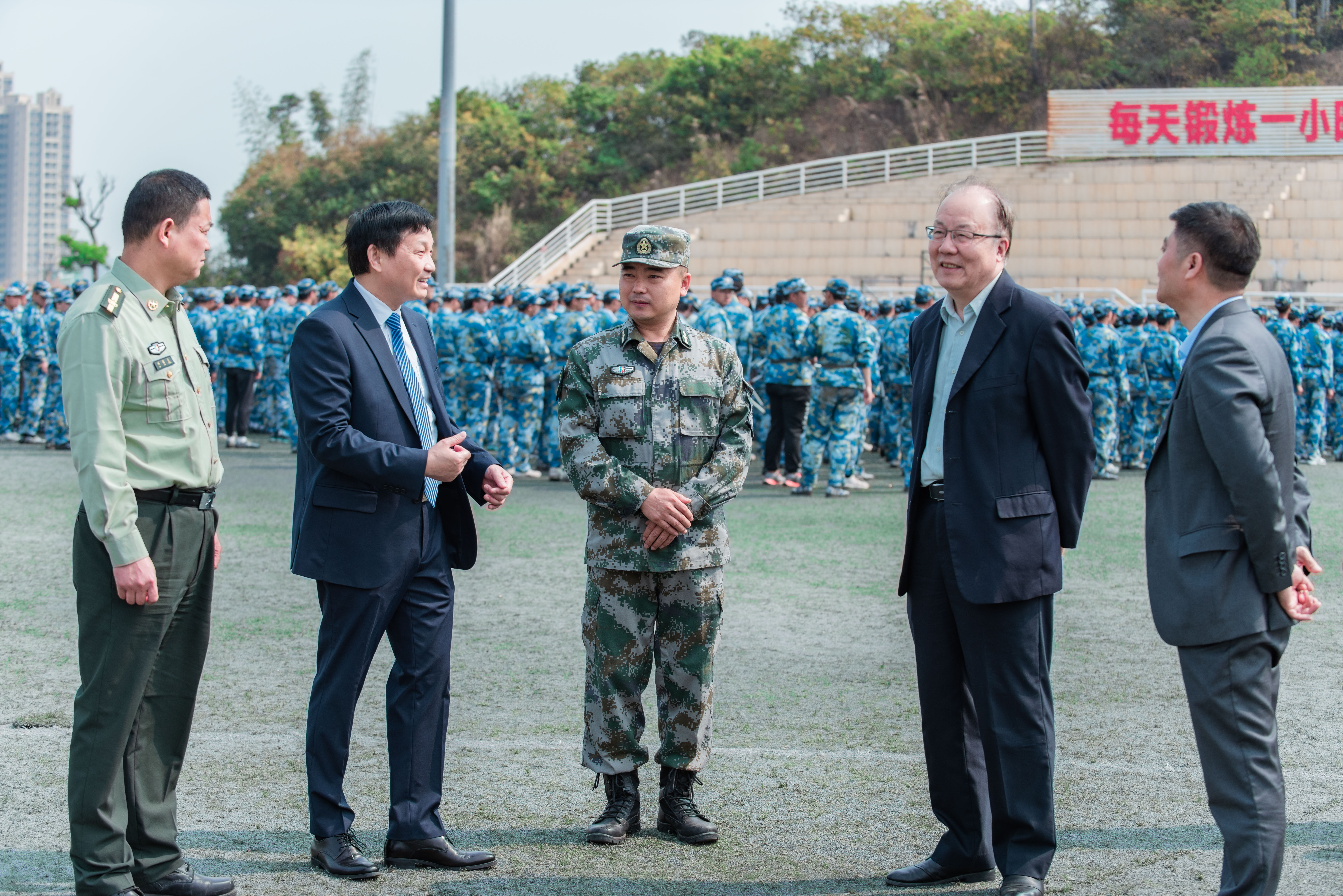 米兰milan军训正在如火如荼地进行中,3月8日上午,校党委书记章德胜、常务副校长方伟华、校长助理孔增强、任广新校领导走访军训现场,看望正在军训的同学们。军训团副团长彭亮,学生处处长刘维仝等陪同走访。