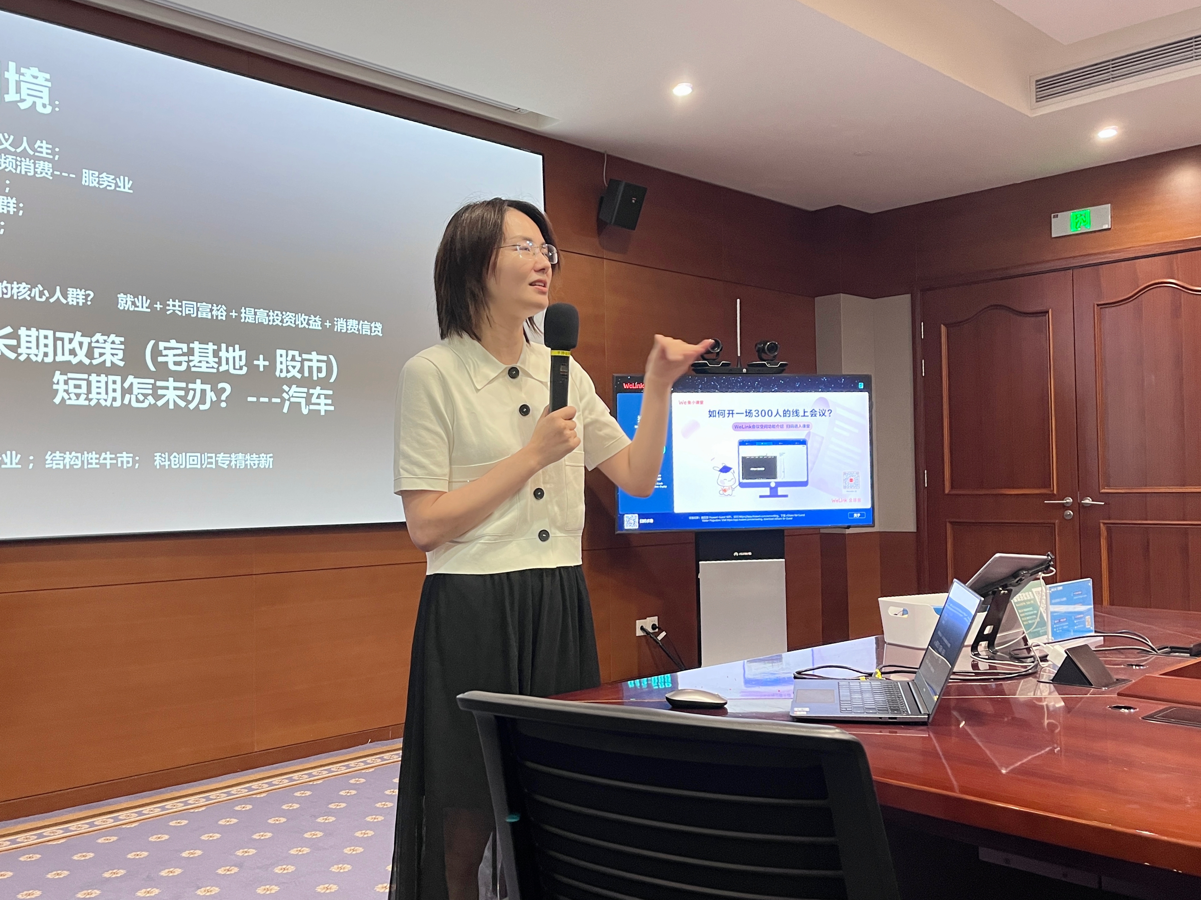 侯瑞瑞博士作为东莞多个专家库受聘专家,此次培训主要从宏观政策层面进行分析。内容分为三个部分。第一个部分是中美之争背后的贸易逻辑与全球化。侯瑞瑞博士深入探讨了中美之间贸易战的根源,并解释了贸易战如何影响全球经济。她还深入探讨了全球化的趋势以及全球贸易格局的转变,从而使华为服务商更好地了解全球经济形势。第二个部分是新形势下的供给侧与内需问题。侯瑞瑞博士介绍了当前中国经济面临的供给侧问题以及内需不足的问题。她还介绍了中国政府采取的措施来构建新发展格局,包括如何高质量发展、构建双循环经济、绿色经济、区域协调发展等问题。这使得华能电力高管团队更好地了解了当前中国经济的形态和政策。第三个部分是新发展格局下的经济预测与企业布局。在这个部分中,侯瑞瑞博士深入探讨了新形势下的中国经济发展格局,以及企业如何适应这种新的发展格局。她提出“制造为本、科技自强、数字路径、金融向实”的四个策略,最后她介绍了如何利用技术和创新来提高企业效率和降低成本,并提出了制定企业战略的建议,以适应这种新的发展格局。