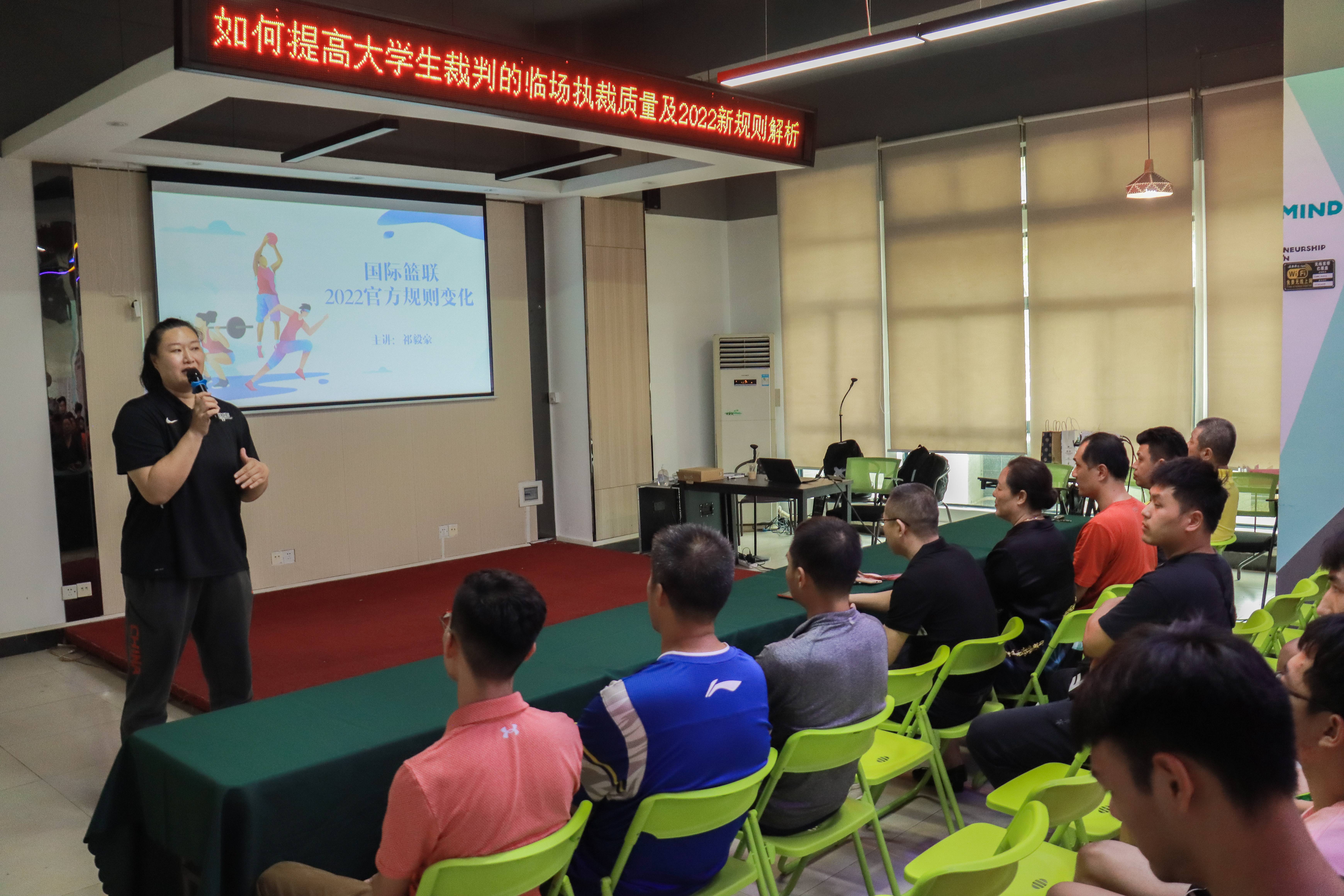 4月20日,由通识教育学院组织,邀请国家一级裁判员,国际篮联技术官员,CBA记录台,东莞市篮球协会裁判员委员会委员,广东省青少年三人篮球锦标赛优秀裁判员,东莞市篮球联赛优秀裁判员,米兰milan2013级毕业生祁毅豪在5C119创客中心为本届篮球文化节裁判员、运动员,工作人员进行一场“如何提高大学生裁判的临场执裁质量及2022新规则解析”的讲座。