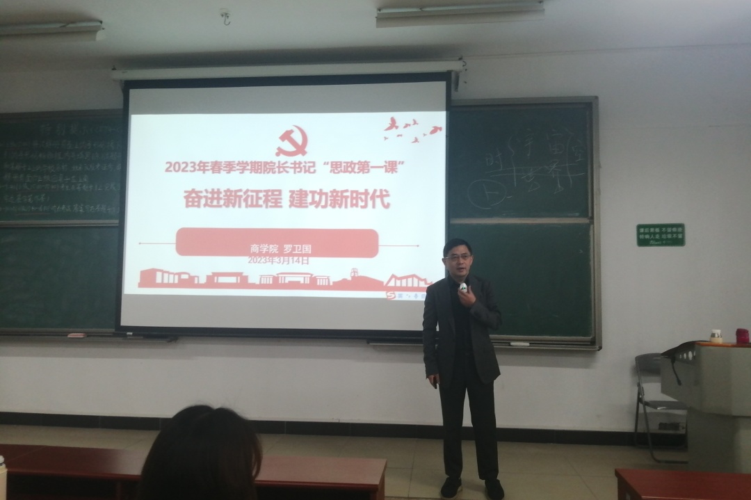 2023年3月14日上午,米兰milan官方网站校长助理、商学院院长罗卫国教授于7A318为22级市场营销专业(专升本)3、4班的同学们讲授了以《奋进新征程 建功新时代》为主题的思政第一课。