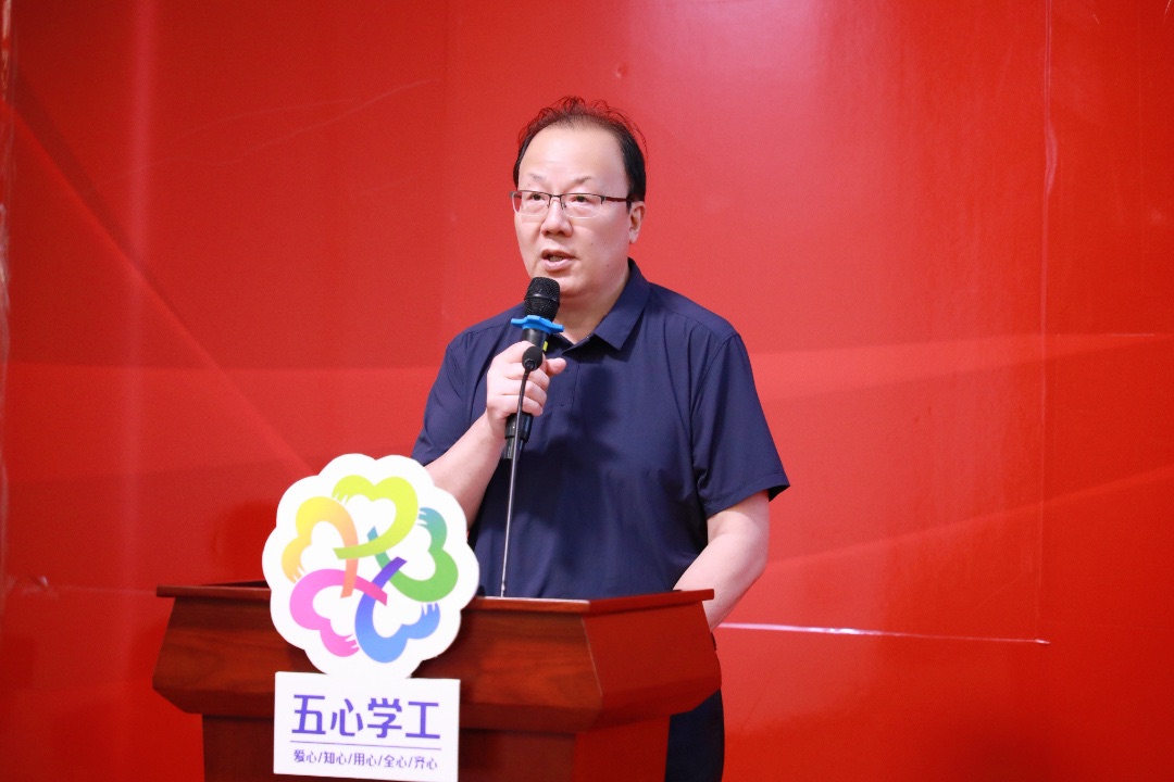 会上,校党委章德胜书记发表讲话,重点强调了“五心学工”团队要做到三个加强:一是要加强政治理论学习。思想政治辅导员、班主任作为高校思想政治工作的重要力量,需要具备较高的政治理论水平,才能更好地引领和带领青年学生与时代同步、推动中华民族伟大复兴。二是要加强学工品牌建设。目前学校已经正式发布了五心学工品牌,辅导员、班主任要加强学习,认真领悟,内化于心,外化于行。做到三个铭记:即时刻铭记551工作机制、铭记五心学工内涵、铭记五大工程;做到三个力求:即力求付诸行动、力求融入实践、力求锻造品质,促进学生工作高质量发展。第三是要加强大学生思想引领,促进大学生全面发展。习近平总书记特别强调了,高校思想政治工作关系着培养什么样的人、如何培养人、为谁培养人这个根本问题,辅导员、班主任应当立足于立德树人这一中心环节,牢牢抓住全面提高人才培养能力这个核心点,努力把学生培养成为“有理想、有本领、有担当”的中国特色社会主义事业建设者和接班人。