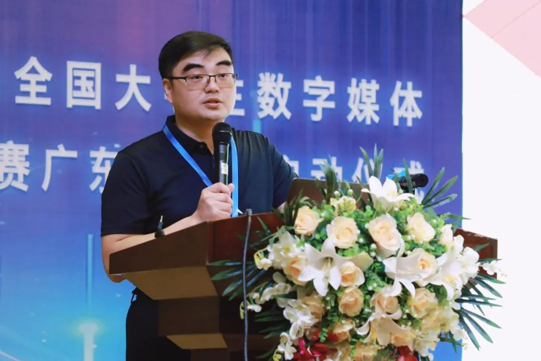 广东省民办教育协会常务副会长张耀荣对大赛的顺利开展表示热烈的祝贺,他用两个故事与大家分享了“智能时代”发展的重要趋势以及未来人才在面临智能科技时的发展路径。他指出广东省民办协会一直致力于推动民办教育事业的发展,积极支持数字媒体科技教育和产业发展,为广大学生提供了更广阔的学习和实践平台,希望数字媒体科技产业会继续蓬勃发展,成为引领和推动经济社会发展的重要力量。