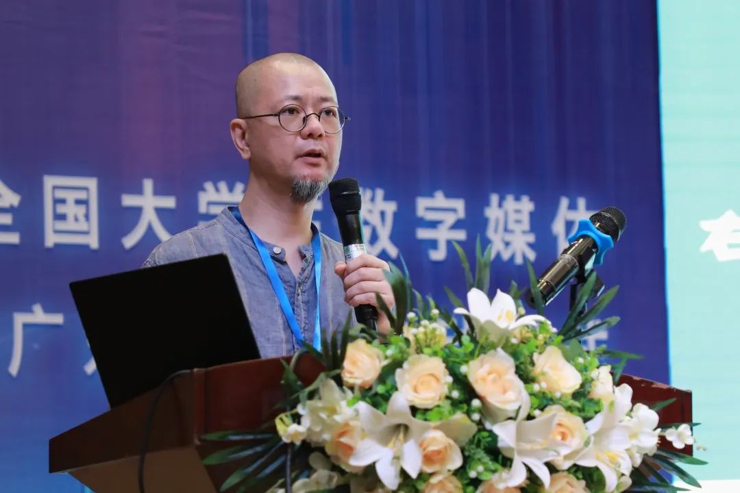 教育部高等学校动画、数字媒体专业教学指导委员会委员,广东省动漫艺术家协会秘书长、广州美术学院陈赞蔚教授作《艺科融合人才培养》的主题分享,他介绍了广州美术学院程创新人才培养方式,开设了《修复实践》《改造与更新》《创意表达》等一些体现艺科融合、产教融合或跨专业的课程,这些课程共同构成了一部立体的广美教学现场,充分展示了广美教学传统的演进与发展历程,以及广美本科一流课程建设的成果和内涵,聚焦各个特色优势,凝练发扬广美“寓德于艺”“一院一品”的教学特色。
