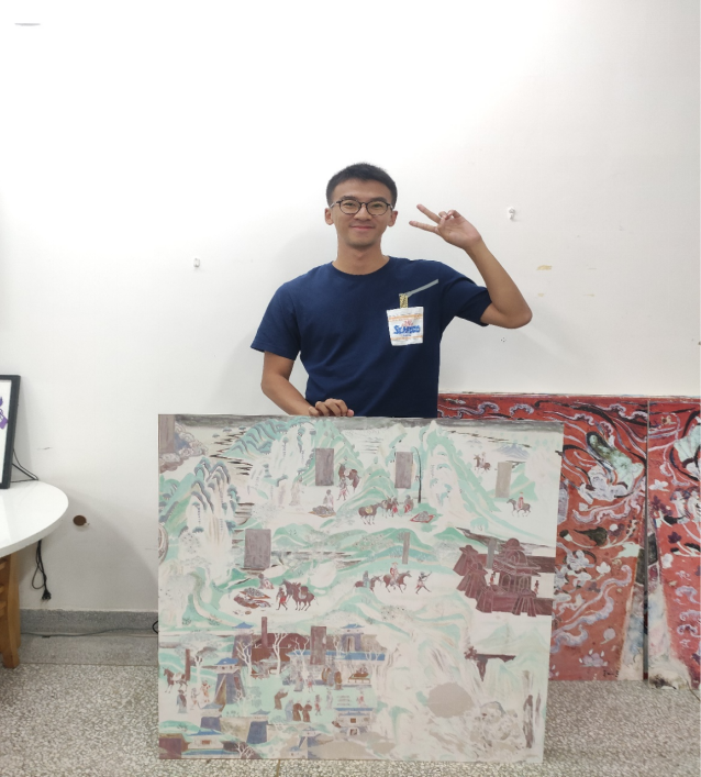 考入西北师范大学研究生后,陈凯源师兄主要研究方向为敦煌石窟的壁画图像,通过这段时间学习,陈凯源师兄认为图像作为不受时空限制的信息载体,具有真实性、直观性的特征,是研究历史的重要材料,许多壁画图像的内容反映的正是历史时期人民群众现实生活的真实场景。陈凯源谈到,就敦煌文化而言,像常书鸿、段文杰、樊锦诗这些老前辈,以及那些长期扎根大漠,一辈子在敦煌工作的学者们,他们才是真正的敦煌文化的守护者和研究者。这些前辈学者都是他学习的榜样,他以前就特别喜欢看他们的自传,看他们当年在条件艰苦的环境下如何继续坚守在敦煌,坚持自己保护敦煌、研究敦煌的事业,而他目前还只是一个刚刚正式踏入这个圈子的学生,说不上什么守护者和研究者,只是足够幸运可以学习自己喜欢的专业。他希望自己博士毕业之后能够留在西北,继续潜心研究敦煌文化。