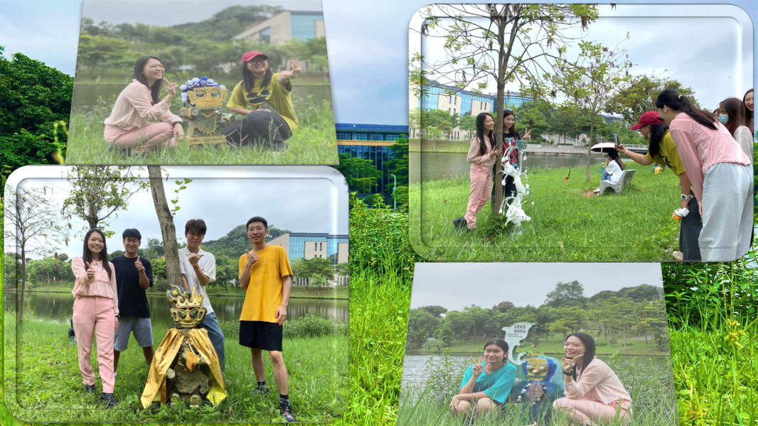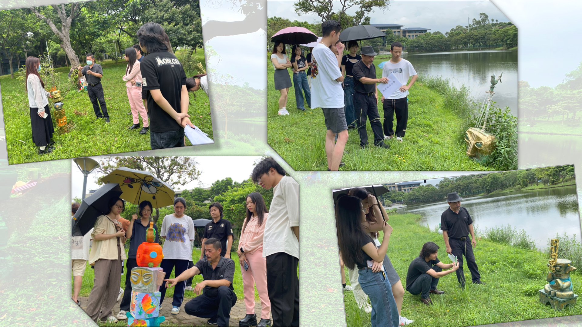「你看!那是什么呀?」、「他们是在拍片吗?」。当天,映月湖畔传来阵阵的对话声响,创意设计学院的师生们在湖畔布置作品,引来路人纷纷驻足围观,并和作品一同合影,为初夏时校园增添了一抹色彩。