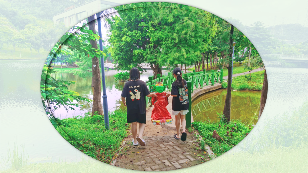 6月15日、6月16日创意设计学院师生携手在映月湖畔策展,由陈涵懿、祝恒威、林右正老师带领2022视觉传达设计1234班学生在湖畔共赏作品飨宴、快闪艺展活动,呈现城院艺术与环境的自然美。