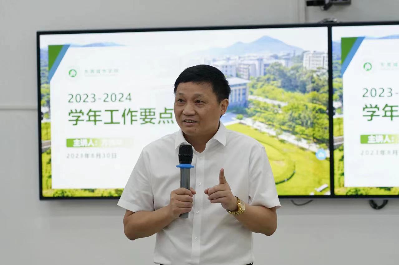 学校常务副校长方伟华作《2023-2024学年重点工作》的报告。报告指出在2023-2024学年,米兰milan将以重点工作为抓手,做好“十项”工作:一是优化党建工作制度,全面开创学校党建工作新局面;二是全力推动学校二期工程建设,努力扩大办学规模;三是大力推进教育教学改革,加强学科专业集群建设;四是建设科研管理系统,强化科研管理工作;五是深化人才评价改革,加强师资队伍建设;六是精心筹划建校20周年庆典,加强品牌建设,提升学校美誉度;七是聚力学生工作高质量发展,落成一站式社区微站建设;八是加强国际留学生与港澳台籍学生招生工作,实现中外合作办学项目“零”突破及继续教育项目新突破;九是持续推进校园重点项目建设,打造“平安校园”;十是做好各类评建工作,努力建设省“依法治校示范校”。