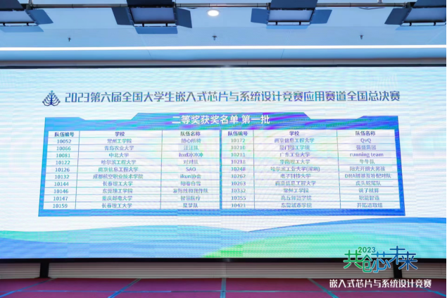 2023第六届全国大学生嵌入式芯片与系统设计竞赛应用赛道全国总决赛于8月15日-8月19日在南京市江北新区南京集成电路培训基地隆重举行并揭晓结果。参赛队伍的编号为10421,队伍成功晋级决赛,并获得全国二等奖奖项。