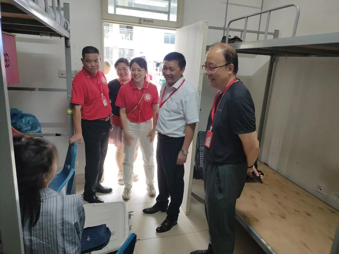 在迎新报到现场,校领导认真倾听了各二级学院和相关职能部门的汇报,了解新生报到情况和流程。校领导对迎新工作给予了高度的评价,并对师生员工及志愿者的付出和辛勤工作表示肯定。各学院和部门在组织和安排方面都做得非常出色,为新生提供了一个良好的报到环境和服务。