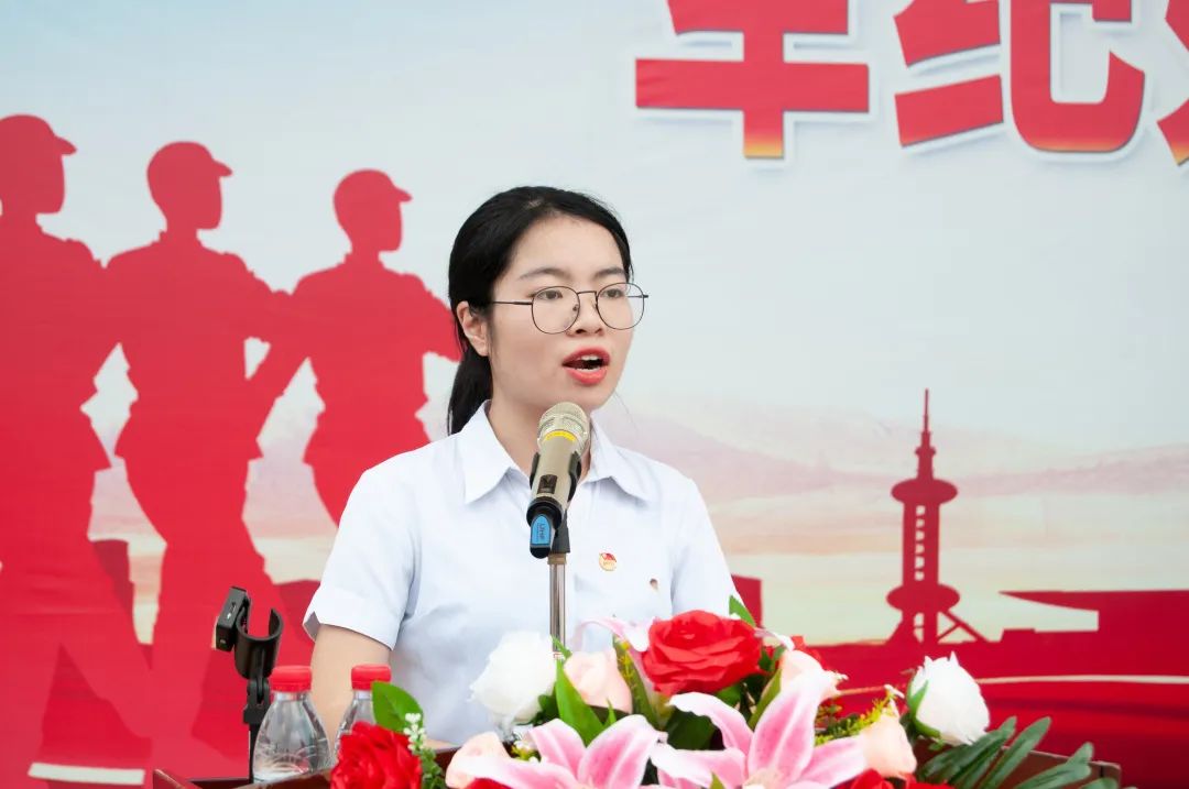 紧接着,校学生会主席21级工商管理张晓桐作为学生代表发言。她说到,军训作为大学的第一课,它不仅能磨炼自己的意志,还能铸造挑战自我、超越自我的能力,为今后的学习生活做好了铺垫。同时,她还结合个人在大学里的经历告诉学弟学妹们,在大学的生活里,应当始终保持勤奋学习的态度,积极地参与各项实践活动,不断地提升自身的能力。