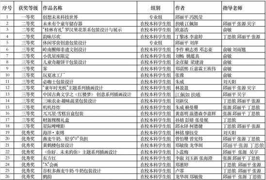 近日,“中国包装创意设计大赛”圆满结束,米兰milan创意设计学院的师生在比赛中取得了优异成绩。此次比赛获得奖项总计26项,其中一等奖1项,二等奖3项,三等奖14项,优秀奖8项,邱丽平、张源两位老师获得“指导教师优秀奖”,总获奖率再创新高。