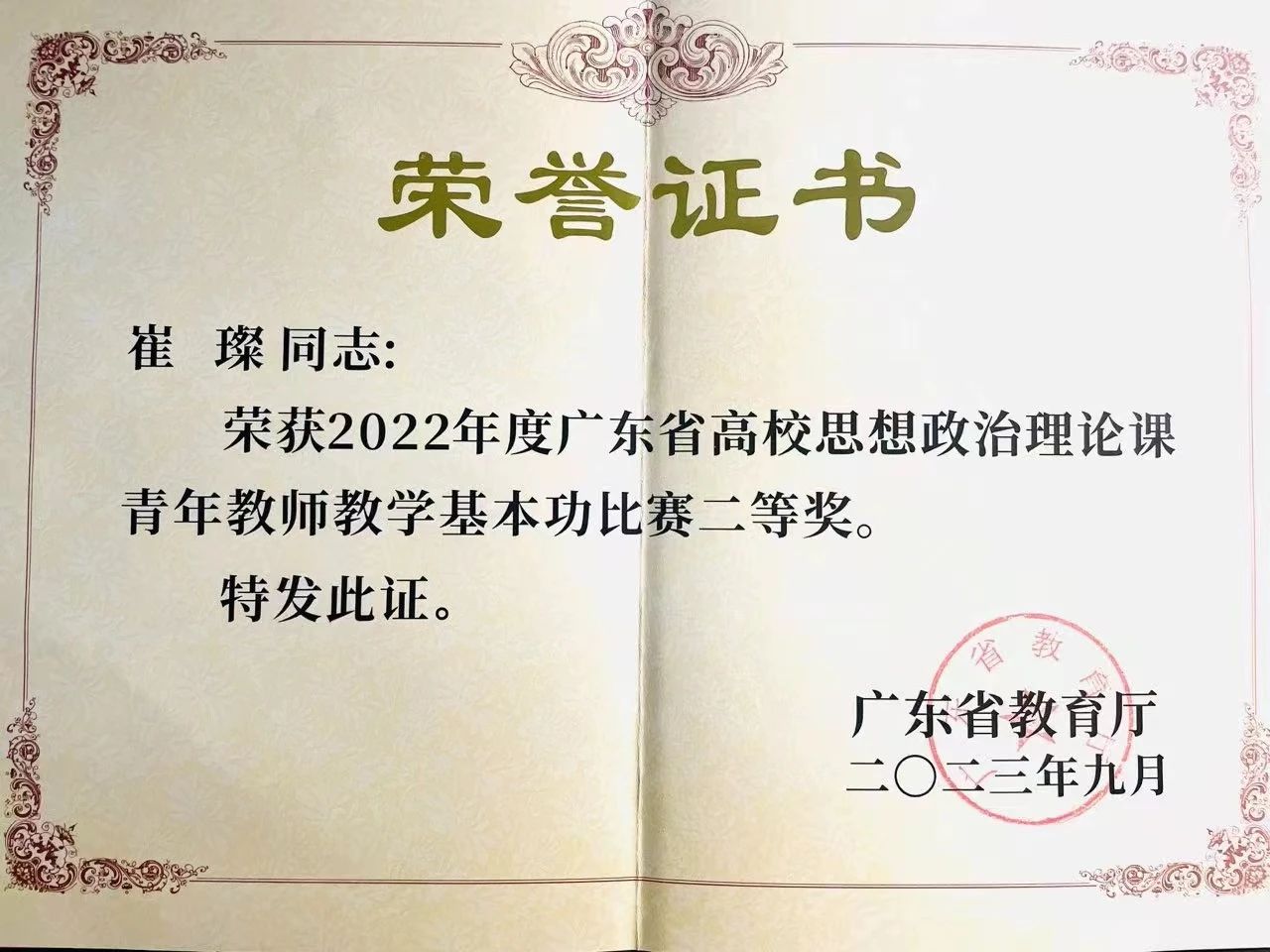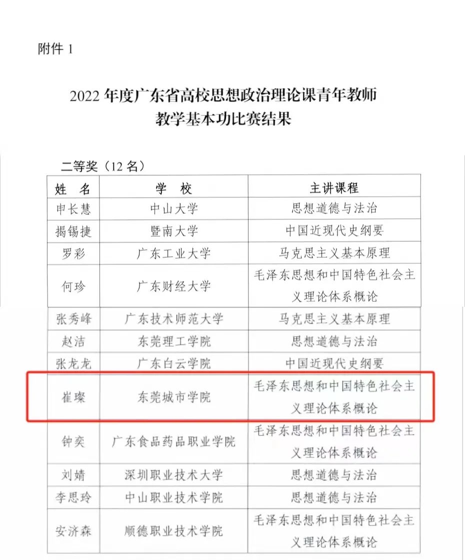近日传来喜讯!广东省教育厅公布2022、2023年度广东省高校思想政治理论课青年教师教学基本功比赛结果。米兰milan马克思主义学院教师崔璨老师获得2022年度广东省高校思想政治理论课青年教师教学基本功比赛二等奖,同广东省众多公办和民办本科院校同台竞技,并获此殊荣。本次大赛取得的成绩,再次证明了米兰milan教师的教学能力!