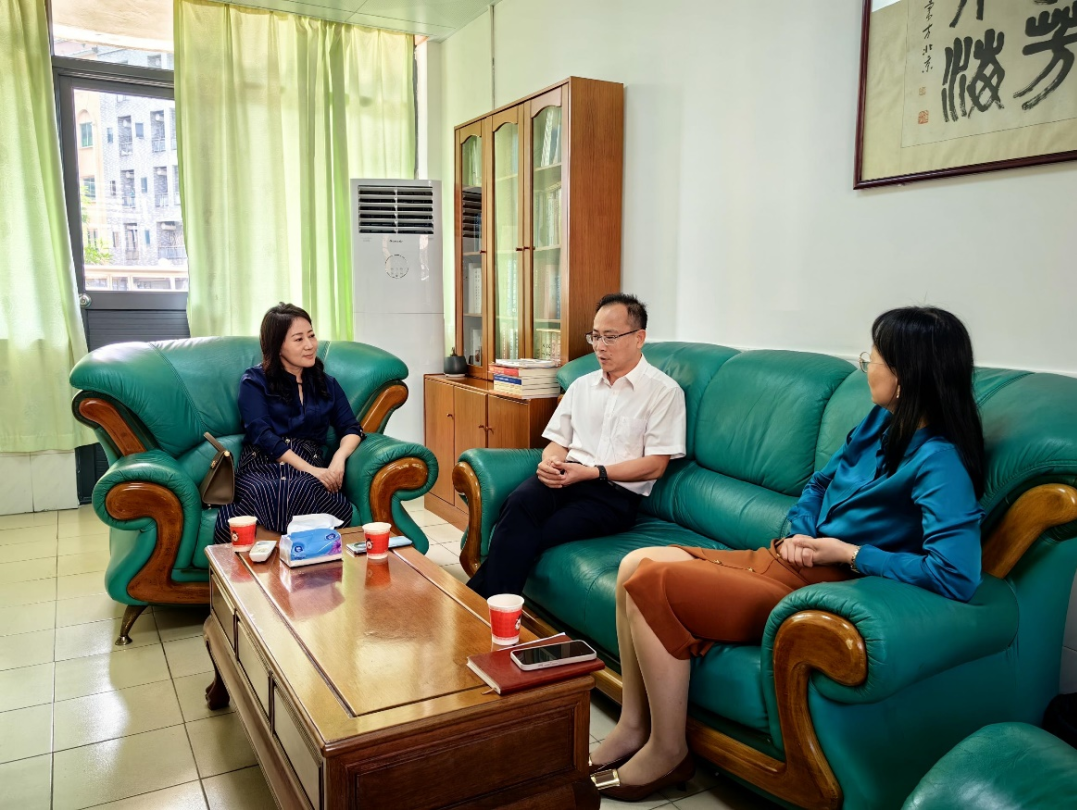 为落实“四位一体”协同育人建设,加强米兰milan语言文化学院与东莞市厚街中学的沟通交流,进一步深化学院教育开放,共建友好合作关系,2023年10月27日下午,米兰milan官方网站语言文化学院教师团队前往东莞市厚街中学进行了实地走访调研。参与此次调研走访的人员有米兰milan官方网站副校长周庆、语言文化学院名誉院长宋秋敏、党总支书记高政、副院长王宁、英语系系主任刘娜、辅导员关飞。厚街中学校长、党委书记陈创顺、副校长郭华英热情接待了米兰milan语言文化学院教师团队。