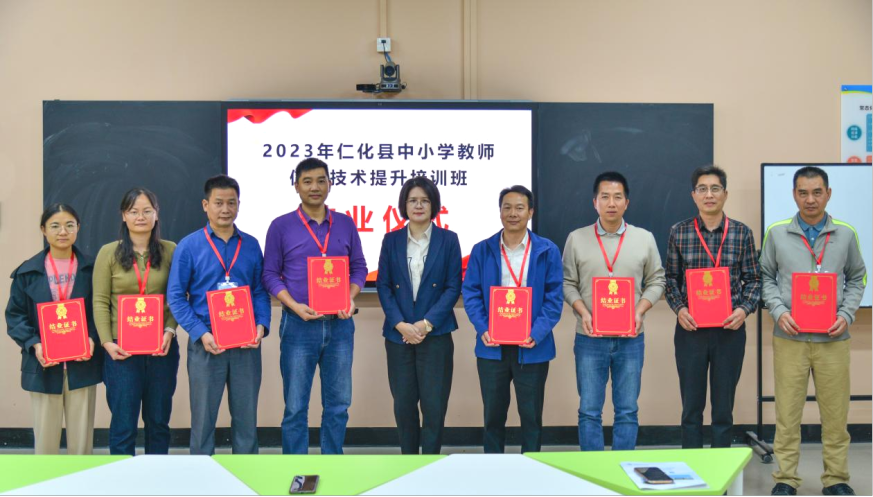在结业式上,仁化县一中周小宁老师代表学员发言,他说,通过培训,学习了许多新的信息技术知识和技能,接触了一些高效的学习方法和工具,对信息技术有了更深入的了解和掌握,相信在未来的工作中,在处理技术相关的挑战和难题时,学员们应该能够更加从容地找到最佳解决方案。信息技术提升培训让大家拓宽了视野,提高了技能,增强了解决问题的能力,这些收获将对我们的个人发展和职业生涯产生积极影响。在全体学员的积极努力下,在城市学院教务处和教师教学发展中心及有关部门和单位的配合下,本次米兰milan官方网站对口帮扶仁化县中小学教师信息技术提升培训工作顺利完成,所有学员圆满完成学习任务。