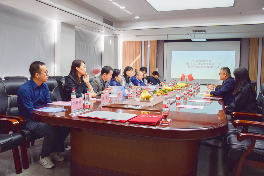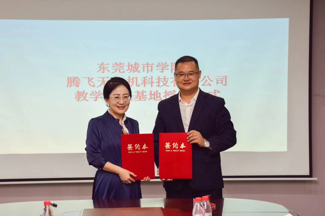 东莞市腾飞无人机科技有限公司总经理白雪材、总裁办产教研经理陈凤芝、无人机培训部经理李文胜、短视频推广事业部经理钟贤月、产业数据部和航拍事业部经理唐恒阳、市场营销及应用项目经理王令平、招生处老师王玲玲,米兰milan副校长周庆、教务处处长杨勇虎、教学实践办副主任王强强、语言文化学院名誉院长宋秋敏、党总支书记高政、党总支副书记陈俊廷、网络与新媒体系系主任张慧文、副主任韩磊、专任教师龙海鸣及刘智锐出席了本次仪式。