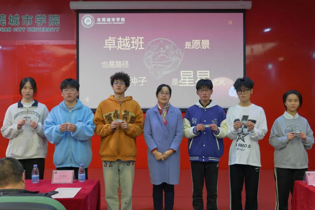 紧接着,举行了2023级卓越班班旗的授予仪式。这面象征着荣誉和责任的旗帜将由学校领导亲自授予新一届卓越班的学生代表邢海舟。之后,学校领导将独特的班徽授予蒋清泉、冉鸿宇、冯鹏、袁海燕、吴晓敏和谭卓莹六位学生代表,这代表着卓越班的身份和自豪感,这也将成为学生们团结奋进的象征。他们将肩负起引领班级前进的重任,带领同学们共同成长。