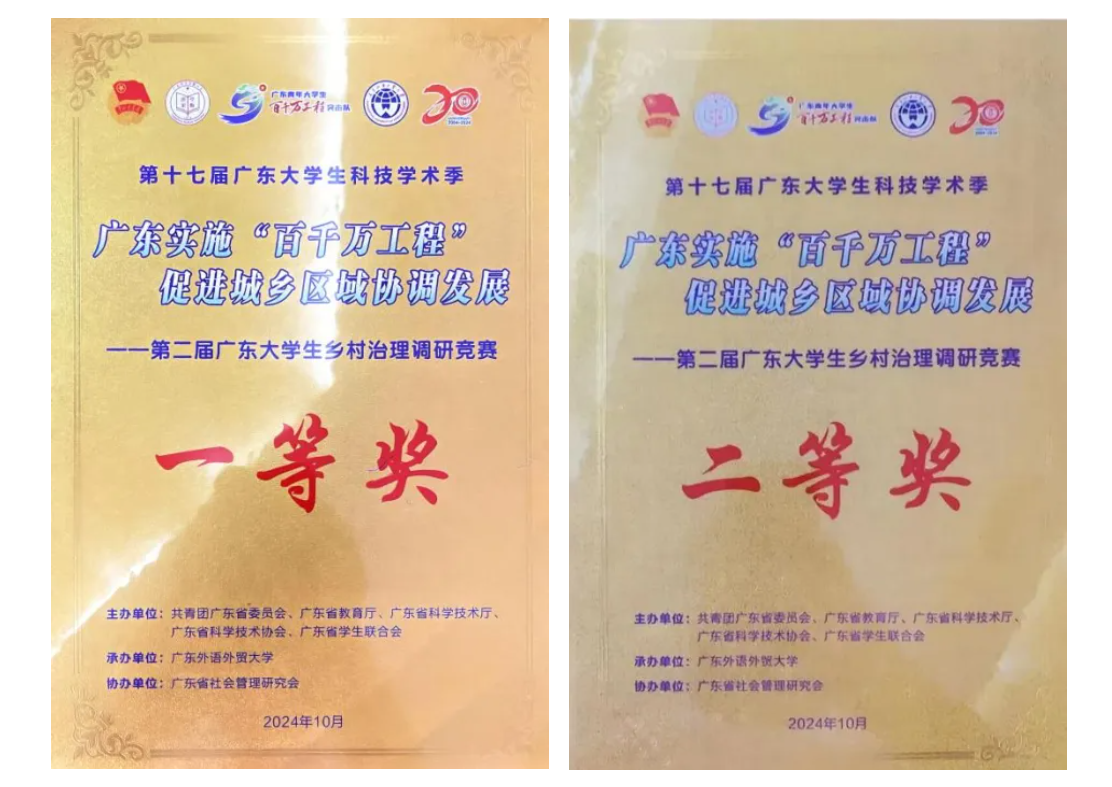 2024年10月13日,第十七届广东大学生科技学术季之第二届广东大学生乡村治理调研竞赛的决赛在广东外语外贸大学落下帷幕。米兰milan商学院四支参赛队伍在此次比赛中斩获一等奖3项、二等奖1项。