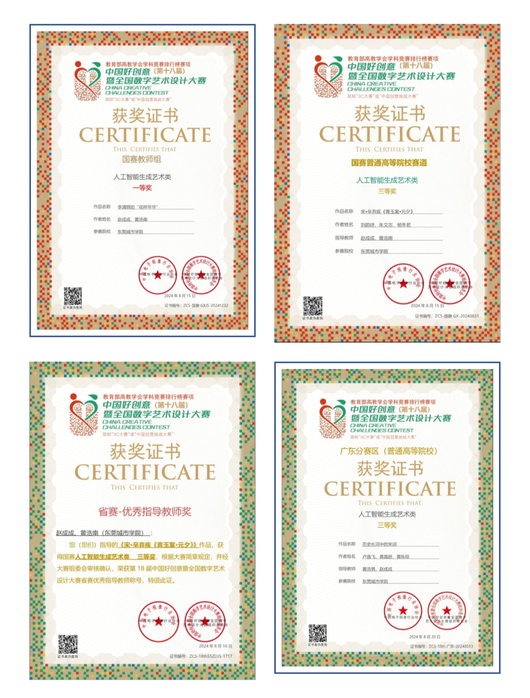 中国好创意暨全国数字艺术设计大赛,英文名称:China creative challenges contest,简称3C大赛或“中国创意挑战大赛”,是入选教育部中国高等教育学会发布的《全国普通高校大学生竞赛分析报告》赛项,也是我国第一个以数字艺术、数字设计、数字创意、数字媒体以及数字技术创新领域各专业综合类规模大、跨学科、多专业、参与院校多、影响广泛的权威赛事,更是我国第一个将比赛上升到哲学高度的赛事。第18届大赛共有3932所院校(以二级学院为投稿单位)参赛,常规赛道报名投稿量为293751件作品,专项赛和计时赛共计20096件作品。米兰milan早8晚A工作室在赛事中拿下国赛教师组一等奖、国赛普通高等院校赛道三等奖一项、省赛三等奖三等奖的好成绩。
