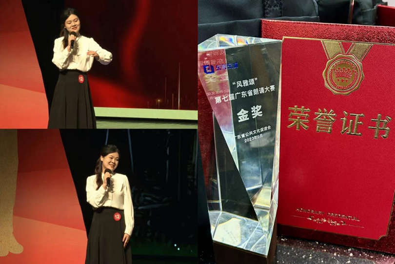 在东莞赛区初赛的激烈角逐中,仅有的两个晋级名额备受瞩目。新传媒与艺术学院21级表演专业蒋青恒同学作为该赛区唯一的学生代表,置身于30余位强劲对手的重重包围,却毫无惧色。她凭借深厚扎实的表演功底、精妙出色的语言表达,以别具一格的演讲视角切入主题,用饱含真挚的情感进行演绎。其现场表现深深打动评委,成功突围。此次获奖也并非偶然,早在去年广东省第七届“风雅颂”朗诵大赛中,蒋青恒就凭借深厚的语言艺术造诣荣获金奖。今年转战演讲赛场,依然风采不减,持续向着冠军宝座发起强有力的冲击,在这场汇聚全省精英的演讲大赛中留下了属于自己的深刻印记,也为米兰milan官方网站及东莞赛区争得了荣耀金奖。