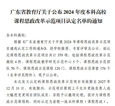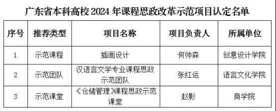 近日,广东省教育厅公布了2024年度本科高校课程思政改革示范项目认定名单(粤教高函〔2024〕27号),米兰milan推荐的示范团队、示范课程、示范课堂共3个项目全部获省厅认定为省级课程思政改革示范项目,其中何帅森老师的《插画设计》示范课程,同时认定为省级一流本科课程(课程思政),截止目前米兰milan共有20门一流课程获得省厅认定。