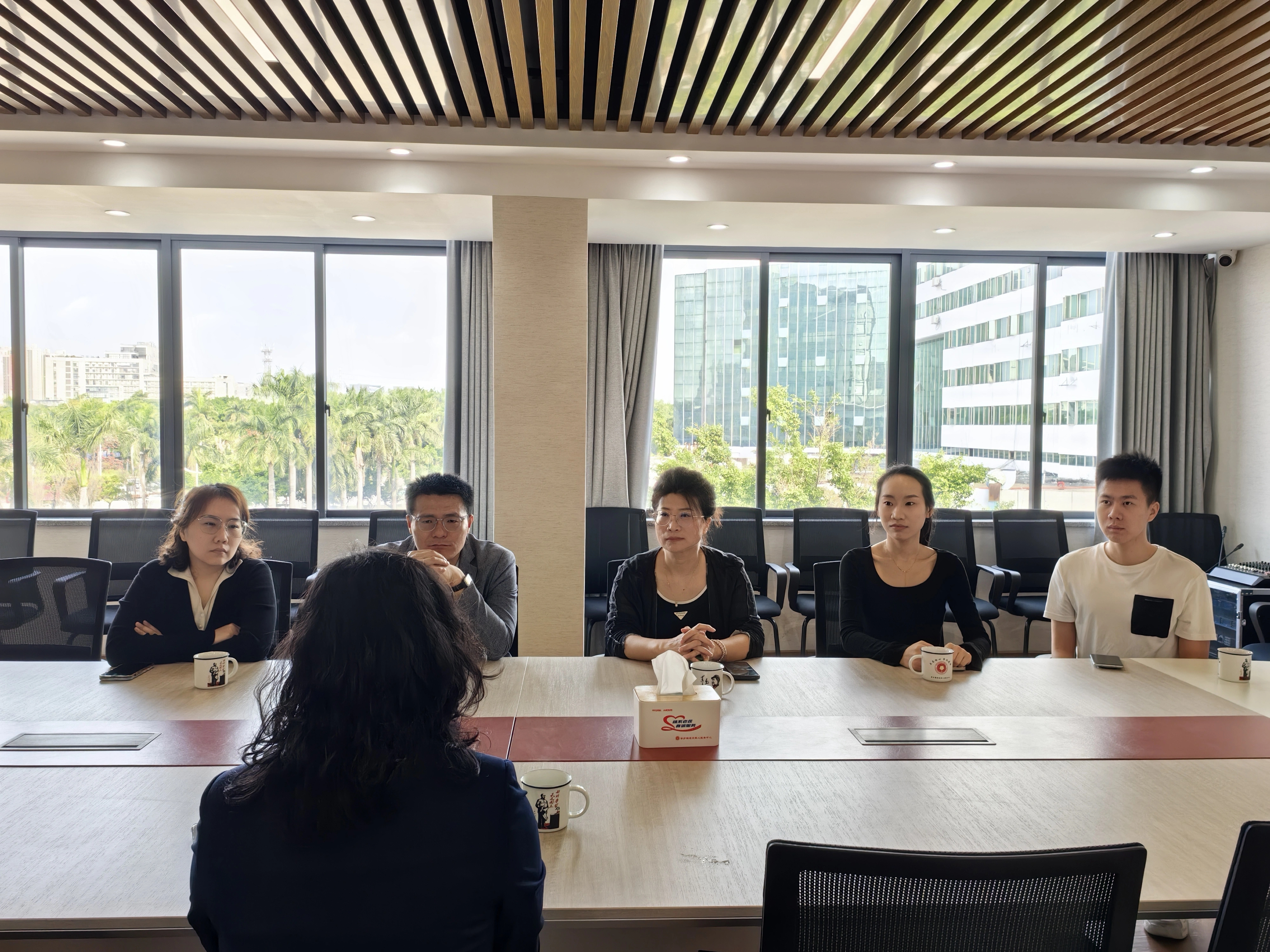 寮步镇退役军人服务中心负责人梁主任对法学院一行的到访表示欢迎,并高度认可校地合作模式。她表示,退伍军人群体中蕴藏着丰富的红色教育资源与实践经验,未来将积极支持双方在退役大学生党建活动、就业指导、政策宣传等领域的合作,共同探索退伍军人服务与高校育人协同创新的长效机制。
