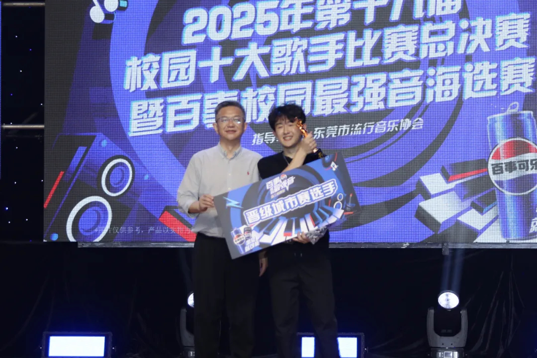 东莞市流行音乐协会主席纪国维为冠军彭博桢颁奖