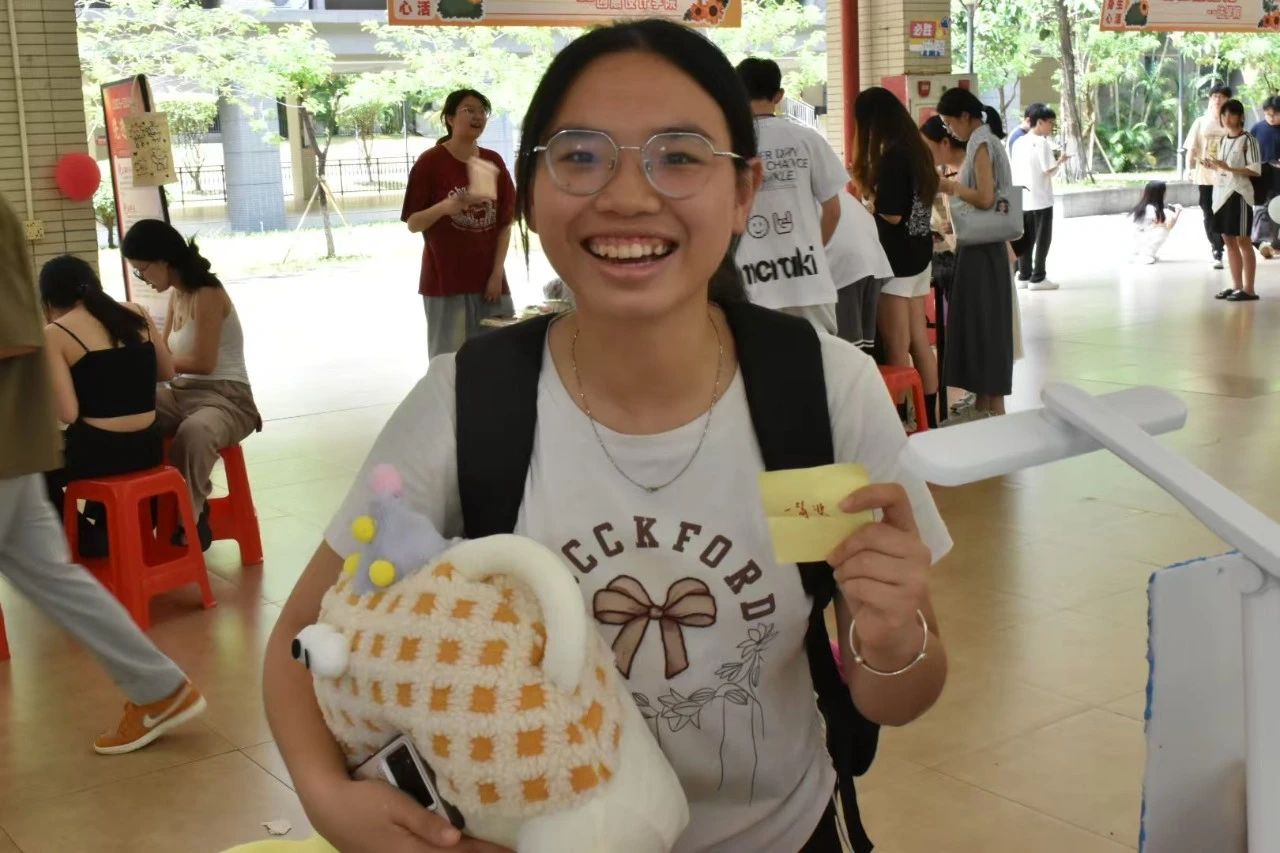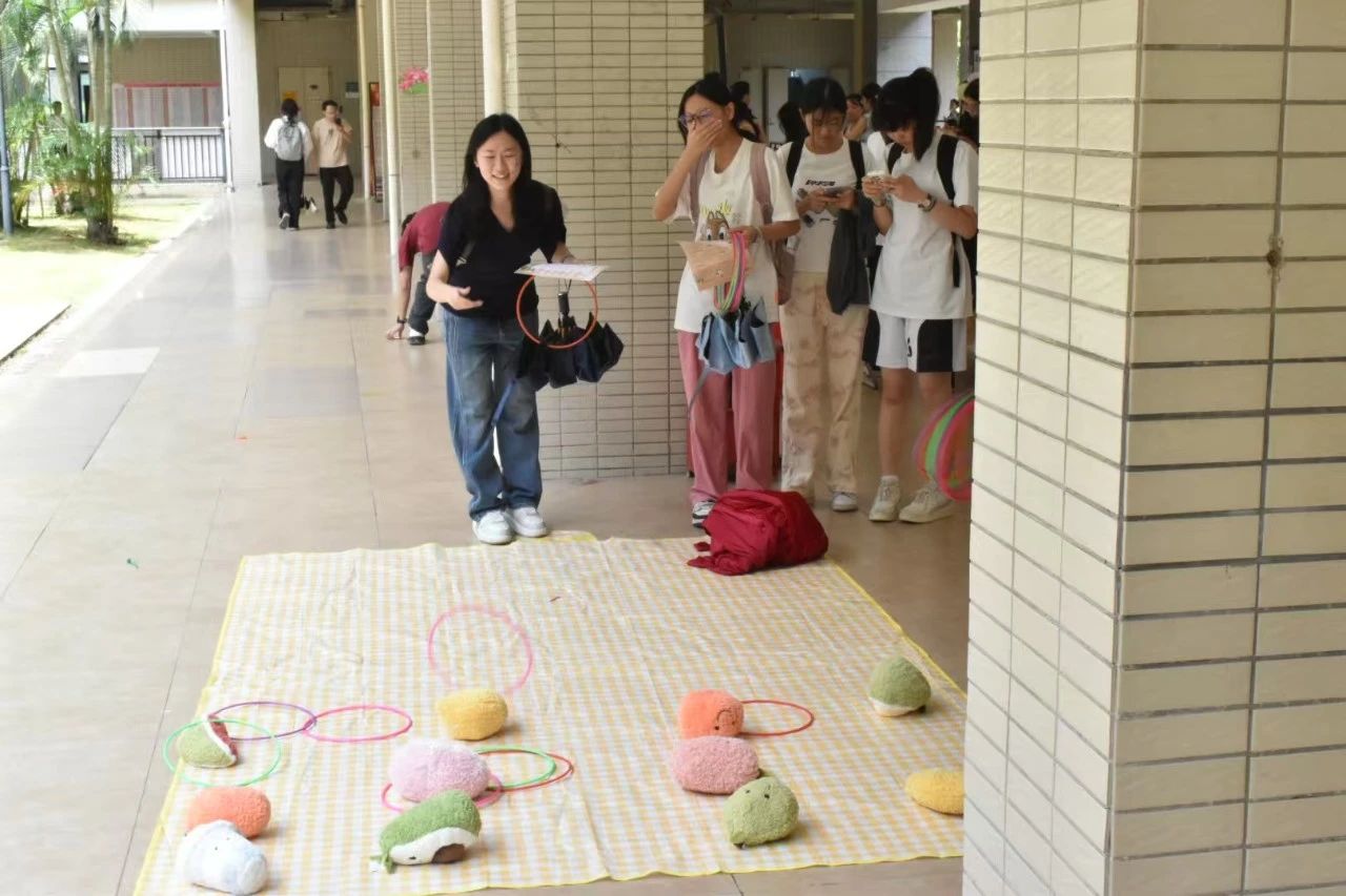 23级汉语9班的蒋同学反馈:这个游戏虽然比较大众,需要身体协调投掷套圈,投中礼物的那一刻会很开心。