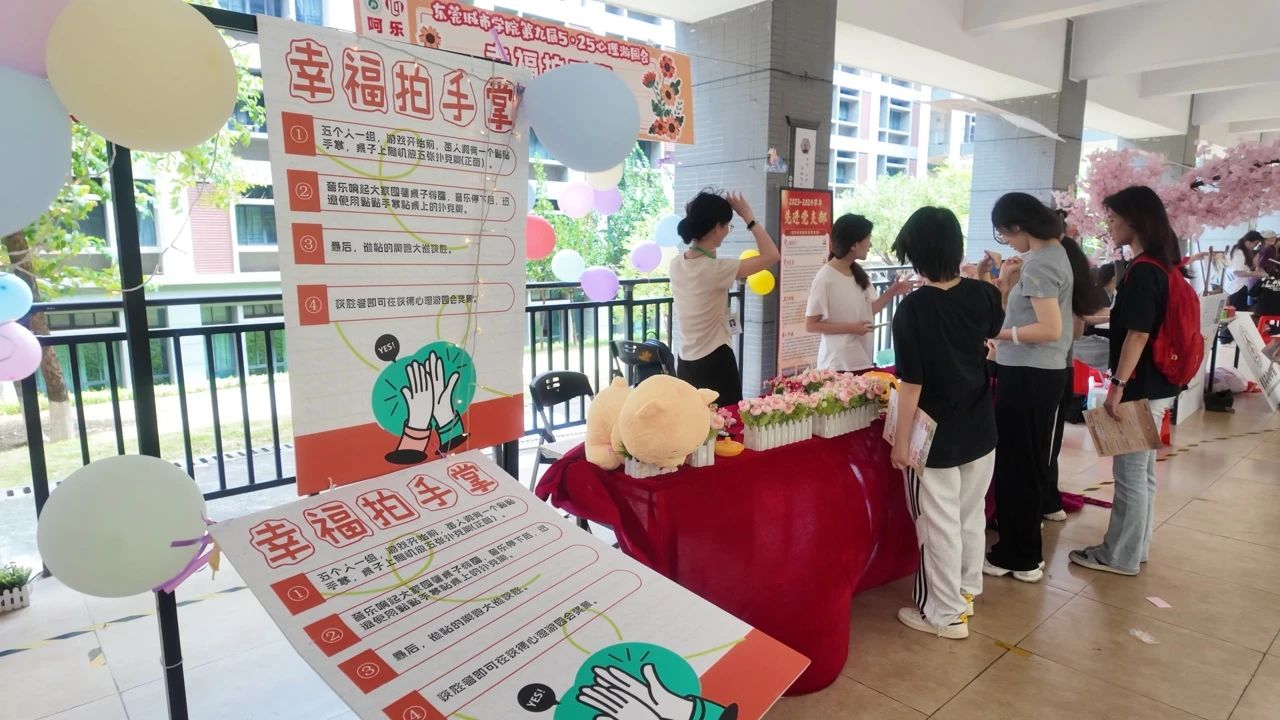 除此之外,心理游园会现场还设置了我们传统的心理游戏区、心理咨询区、心理测试区、5·25宣言区、自由创作区和兑奖区,同学们在现场通过在各个区参与体验打卡来收集印花游园。同学们还能在一个又一个的游戏互动体验中,学会交流合作、学会分享、学会专注、学会接纳、学会放松,加深对自我的探索和认识,健脑又健心——身心健康无小事,关爱自己在行动!