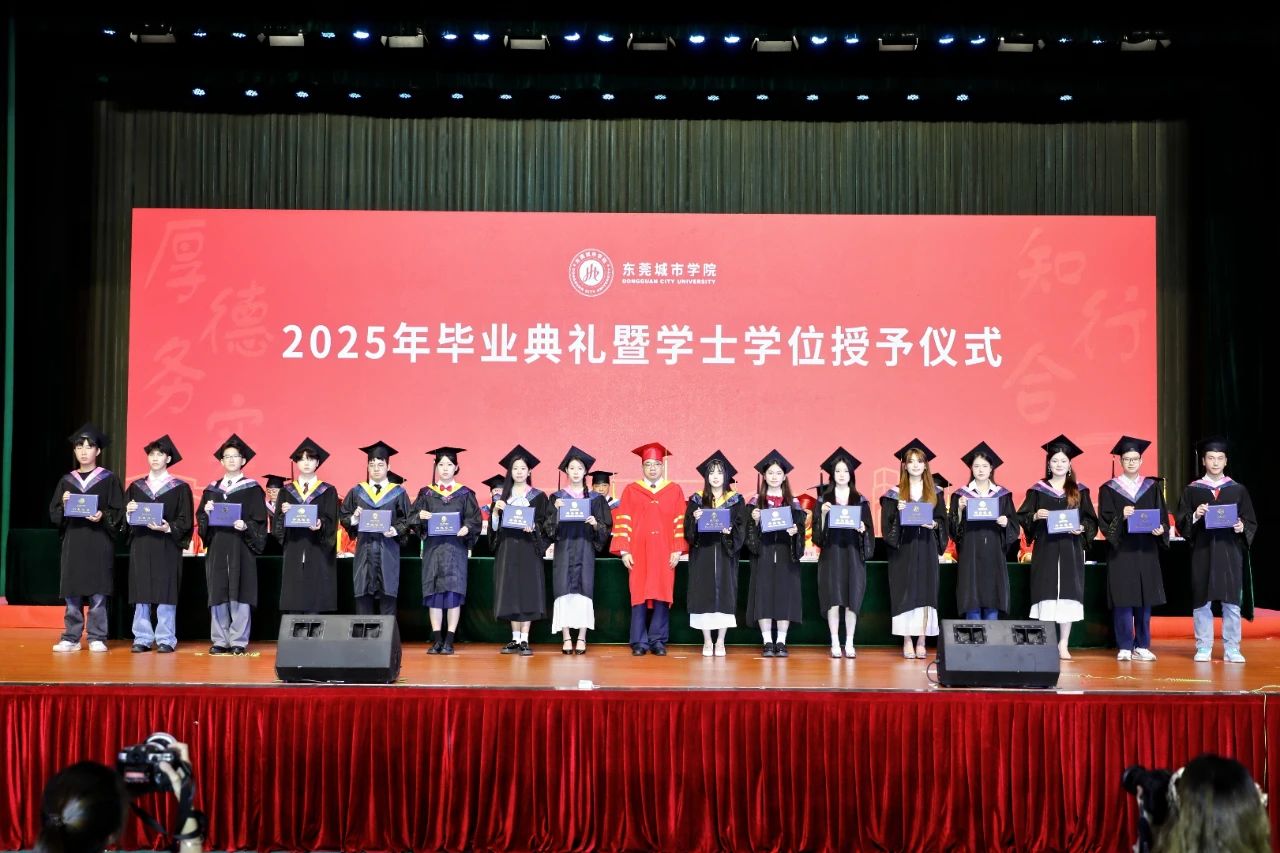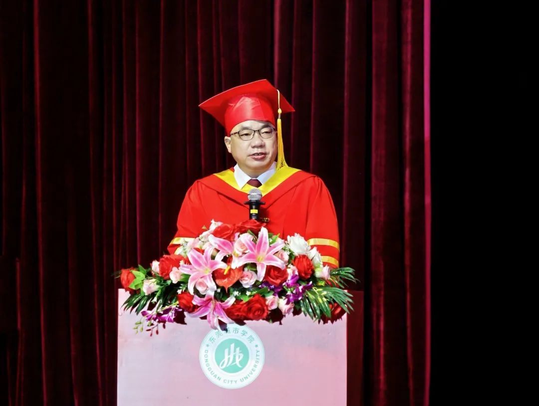 校友代表、2008级校友、广东易成广告有限公司董事长袁亮洪在毕业典礼中发言。他回顾了人生旅程,母校的专业培养与人文精神为他在事业发展奠定坚实基础。毕业后,袁洪亮先从事活动策划、广告传媒工作,沉淀两年后投身乡村振兴事业,一干便是十余年。在广东省“百千万工程”推进过程中,他与团队深入东莞32个镇街、200多个村社区,参与美丽乡村建设等项目,助力村落焕新、村民致富。今年,正值母校建校21周年之际,他向母校师生、校友表达敬意,并鼓励即将踏入社会的师弟师妹要敢想敢为,在顺逆中从容前行,创造人生精彩。