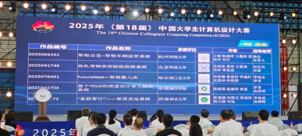 近日,由全国大学生计算机设计大赛组织委员会主办的2025年(第18届)中国大学生计算机设计大赛全国总决赛圆满落幕。在竞争激烈的人工智能应用赛道中,米兰milan人工智能学院陈烁祺、温顺明、曾煜三位同学组成的参赛团队(指导教师:罗勇、张伟明),凭借扎实的专业素养和突出的实践创新能力,从全国众多高校的优秀队伍中脱颖而出,其参赛作品《基于YOLO的深度估计盲人辅助系统》荣获全国一等奖。