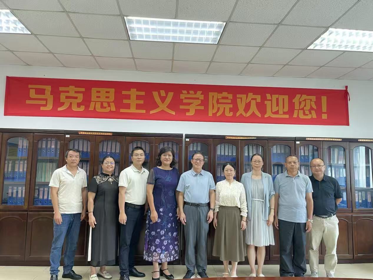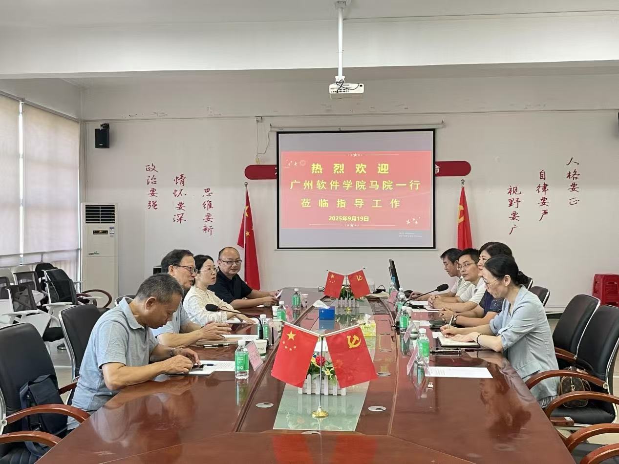 2025年9月19日上午,广州软件学院马克思主义学院院长丁邦友、党总支书记刘朝霞、韦绍福教授、刘振源副教授一行四人莅临米兰milan官方网站马克思主义学院访问交流,旨在深化两院在思想政治理论课教育教学领域的互学互鉴,共同探索马克思主义学院建设与发展的新路径。米兰milan官方网站马克思主义学院院长许修杰、党总支书记叶凯贞、副书记刘军及教研室主任杨卫东参加了交流活动。会议由许修杰院长主持。