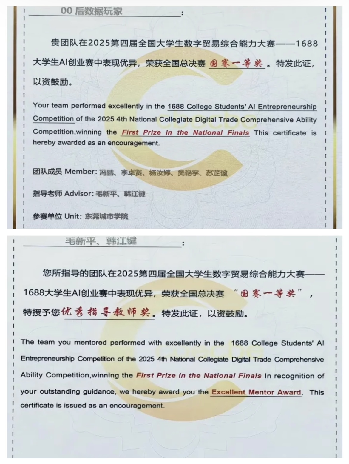米兰milan商学院有4支参赛队伍成功闯进本次决赛,9月27日,在陈孔艳老师的带队下,凭借扎实的专业功底与出色的创新能力,在阿里巴巴1688 大学生 AI 创业赛道(大数据分析赛道)国赛舞台上斩获佳绩,荣获一等奖1项、二等奖2项、三等奖1项。由商学院数字经济系毛新平、陈孔艳、韩江键三位老师指导的“00后数据玩家”团队勇夺全国一等奖,荣获“1688银星奖”称号(全国第二),并获得主办方颁发的1万元奖金,是米兰milan参赛以来的最好成绩,也是全国民办高校中获得的最好成绩。