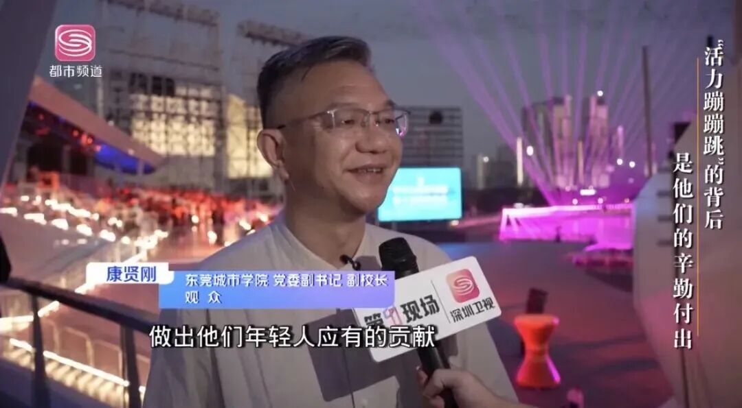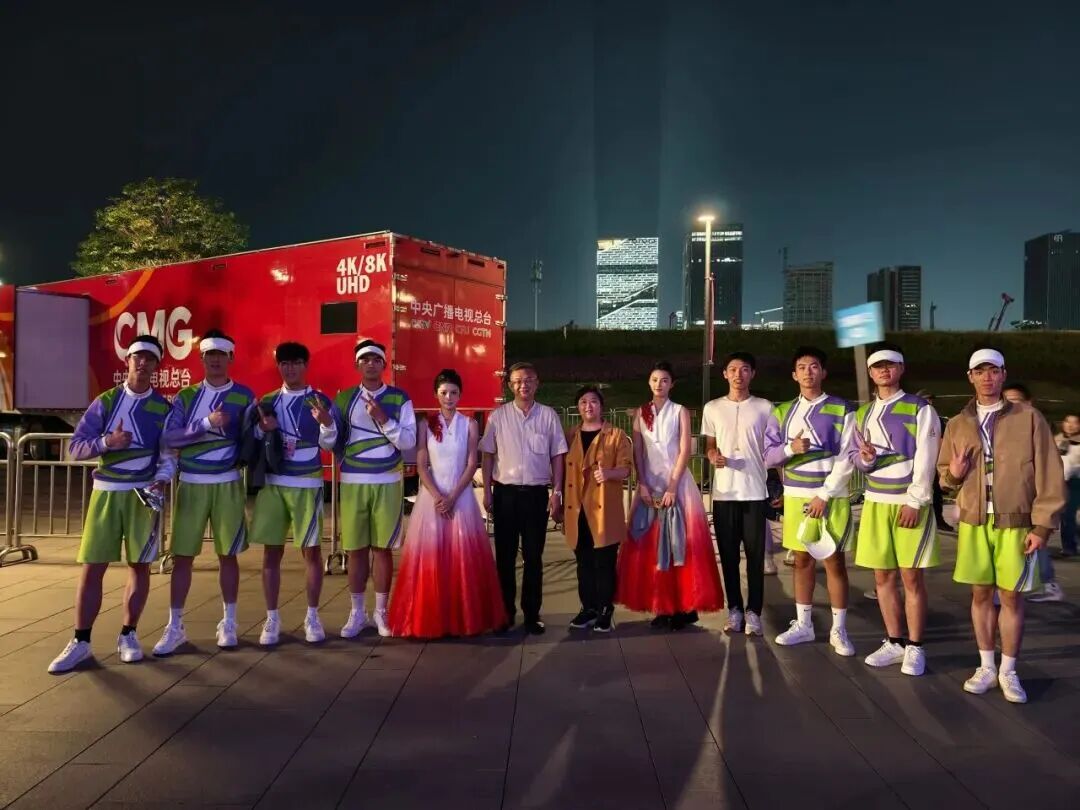 近日,十五运会闭幕式首次全要素联排在深圳前海欢乐剧场举行。闭幕式筹备工作进入最后冲刺阶段,排练期间,学校党委副书记、副校长康贤刚,学生部部长林蓉到排演现场慰问参演学生,校团委专职副书记梁刚肇陪同参与。
