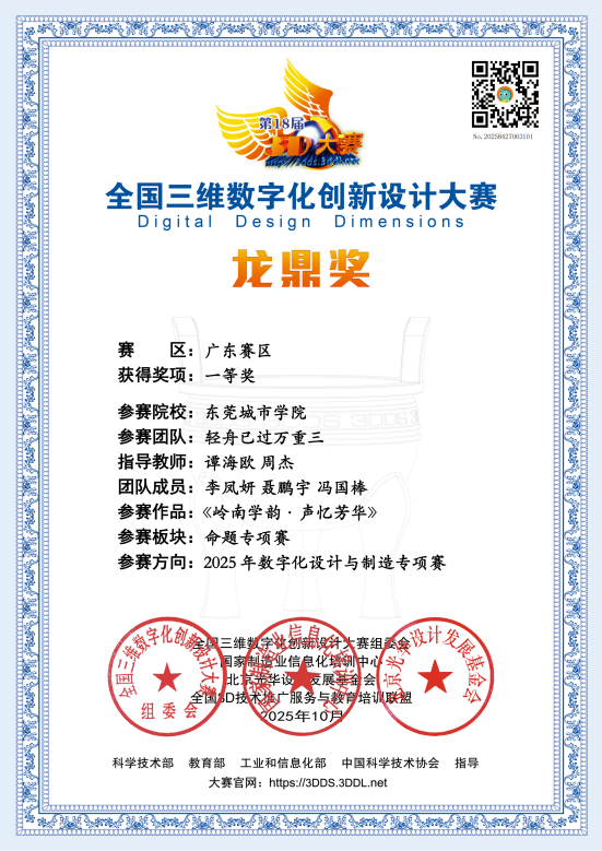 此次大赛由科学技术部、教育部、工业和信息化部、中国科学技术协会指导,全国三维数字创新设计大赛组委会、国家制造业信息化培训中心等单位联合主办,是国内具有重要影响力的三维数字化创新设计赛事,为高校学子搭建了展示数字化设计与制造能力的优质平台。