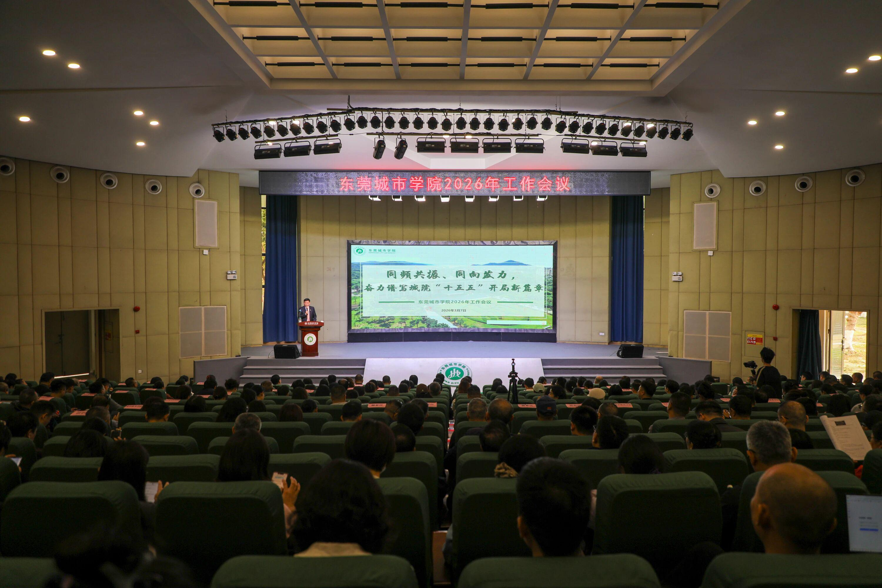 校长李振华作2026年学校工作报告,他以“同频共振、同向发力,奋力谱写城院‘十五五’开局新篇章”为主题,系统回顾办学成果、分析发展形势、明确工作任务。他首先全面回顾2025年学校在八大领域取得的突破性办学成果。过去一年,学校以习近平新时代中国特色社会主义思想为指导,紧扣高质量发展核心,党建思政工作走在全省同类院校前列,“三全五导”成长导师制落地见效;教学科研上,学校深化教育教学改革,聚焦科研创新赋能,推动教学质量与科研实力双提升、双突破;人才培养开设十余类特色创新班,学生省级以上学科竞赛获奖超1600项;学生发展落实资助资金超1.5亿元,“红色网格”社区治理模式成效显著;办学条件方面二期项目纳入东莞重大预备项目,实验室升级改造全面完成等,为学校“十五五”开局筑牢坚实基础。