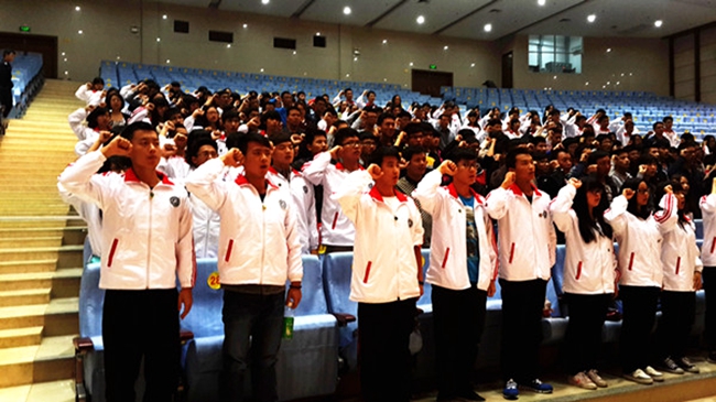 “崇尚科学,加强修养,拒绝毒品,珍爱生命,感恩父母,幸福生活!”212名师生在石志民老师的带领下庄严宣誓。