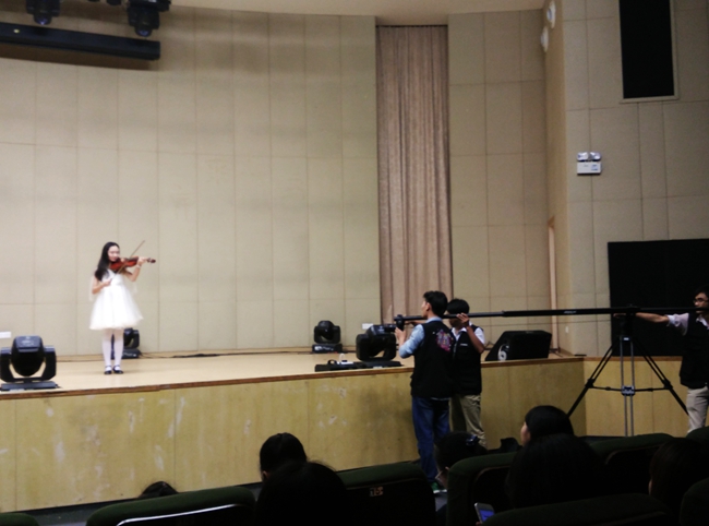 据悉,此次拍摄的是微剧场《追梦女孩》,讲述一个关于梦想的故事,预计这档节目将于明年1月份在东莞播出。这也是该剧场第三次来我院选择拍摄场地。