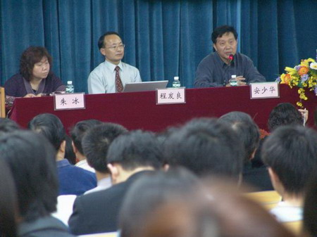 党委书记朱志德主持会议,常务副院长程发良教授做了关于2005年工作总结和2006年工作要点的报告。副院长林世俊教授就开学情况和如何培养学生能力问题作了发言。最后,院长安少华教授着重强调指出:要出色地完成全年的目标任务,必须牢固地树立机遇意识、竞争意识、战略意识、品牌意识和资源意识。