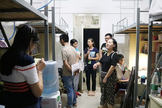 9月4日晚,文传系党总支副书记苗琳、辅导员黄静惠、李祥带领学生干部们为了解近日台风对文传系同学们的住宿影响以及开学的生活状态,走访了文传系老生多栋宿舍,了解住宿情况,嘱咐学生们的用电安全事宜。走访加强了师生们的课外交流,使师生关系更为融洽。