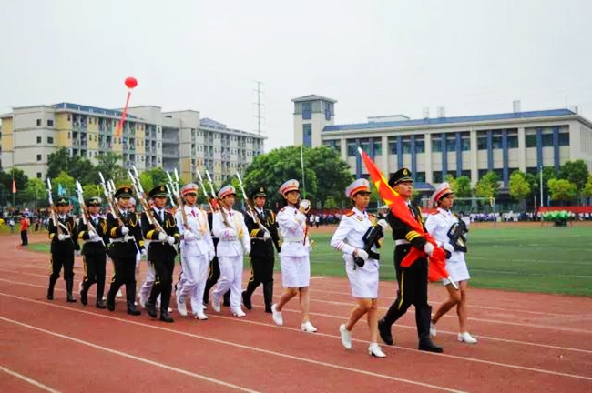 今天上午,校运会开幕式升完国旗后,退场时队员们齐刷刷地放下了自己肩上扛着的枪,才“哇!”的一声松了一口气。