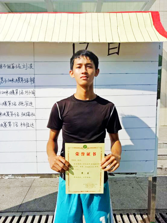 在谈及跨栏姿势时,梁同学非常谦逊,“比赛前就跟着师兄去学习跨栏的姿势动作,师兄的教导让我受益匪浅。很开心能拿到这个奖项,当初报名只是怀抱着一种学习的心态,取得这个结果多亏了师兄的指导!”梁同学在校运会前都没接触过110米跨栏这个项目,一开始练跨栏跳过去会很耗时间,所以在训练过程中需要不断地矫正动作,争取每次练习都能有所提高。他直言,下一年运动会如果时间充裕就会去尝试其他项目。
