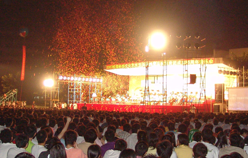 4月15日夜晚,城市学院田径场灯火通明,琴声悠扬,2007校园科技文化艺术节开幕式暨庆祝共青团成立85周年交响音乐会在这里隆重举行。