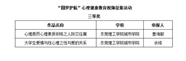 日前,广东省教育厅公布了2018年度高校学生心理健康教育系列活动结果。我院多项心理作品入围决赛,并斩获了2个一等奖、2个二等奖、3个三等奖。